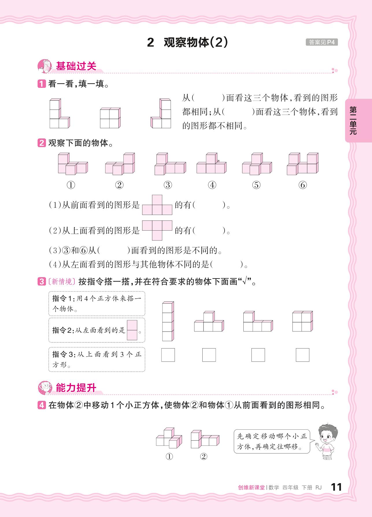 2024春下册四年级数学人教版 第二单元 观察物体(二)——2. 观察物体(2)_R240122173907902