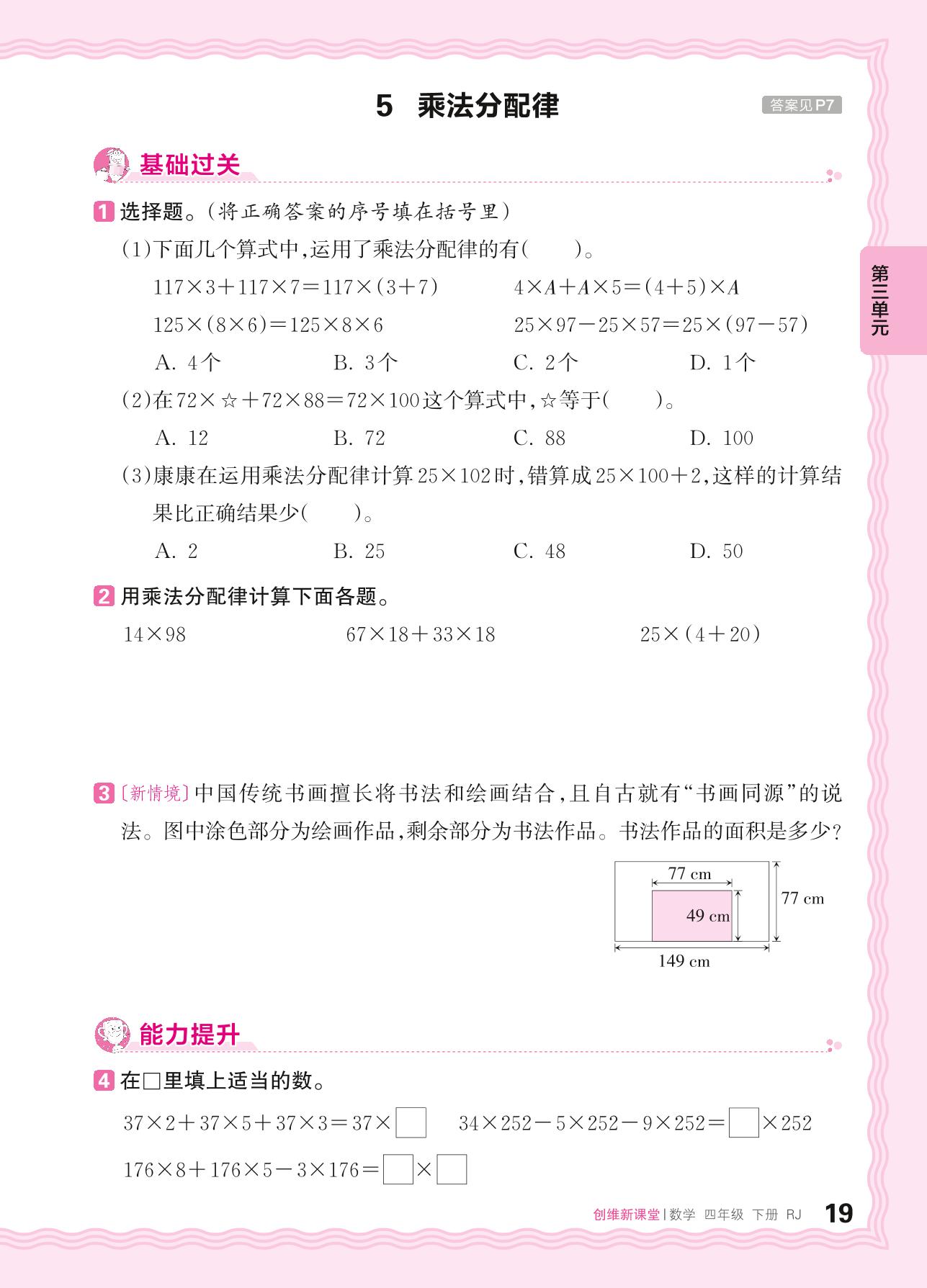 2024春下册四年级数学人教版 第三单元 运算律——5. 乘法分配律