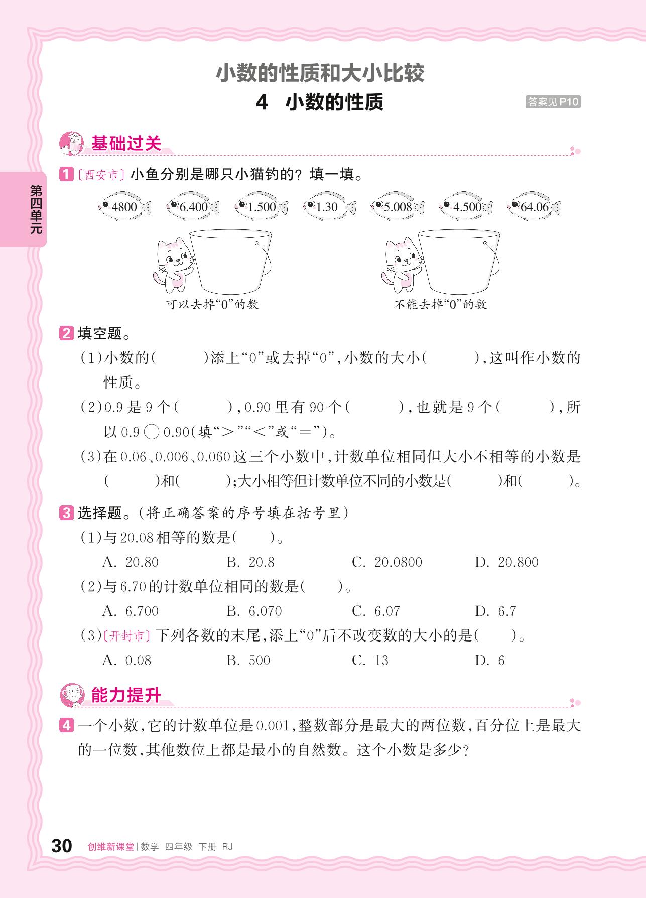 2024春下册四年级数学人教版 第四单元 小数的意义和性质——4. 小数的性质_R240122173913091