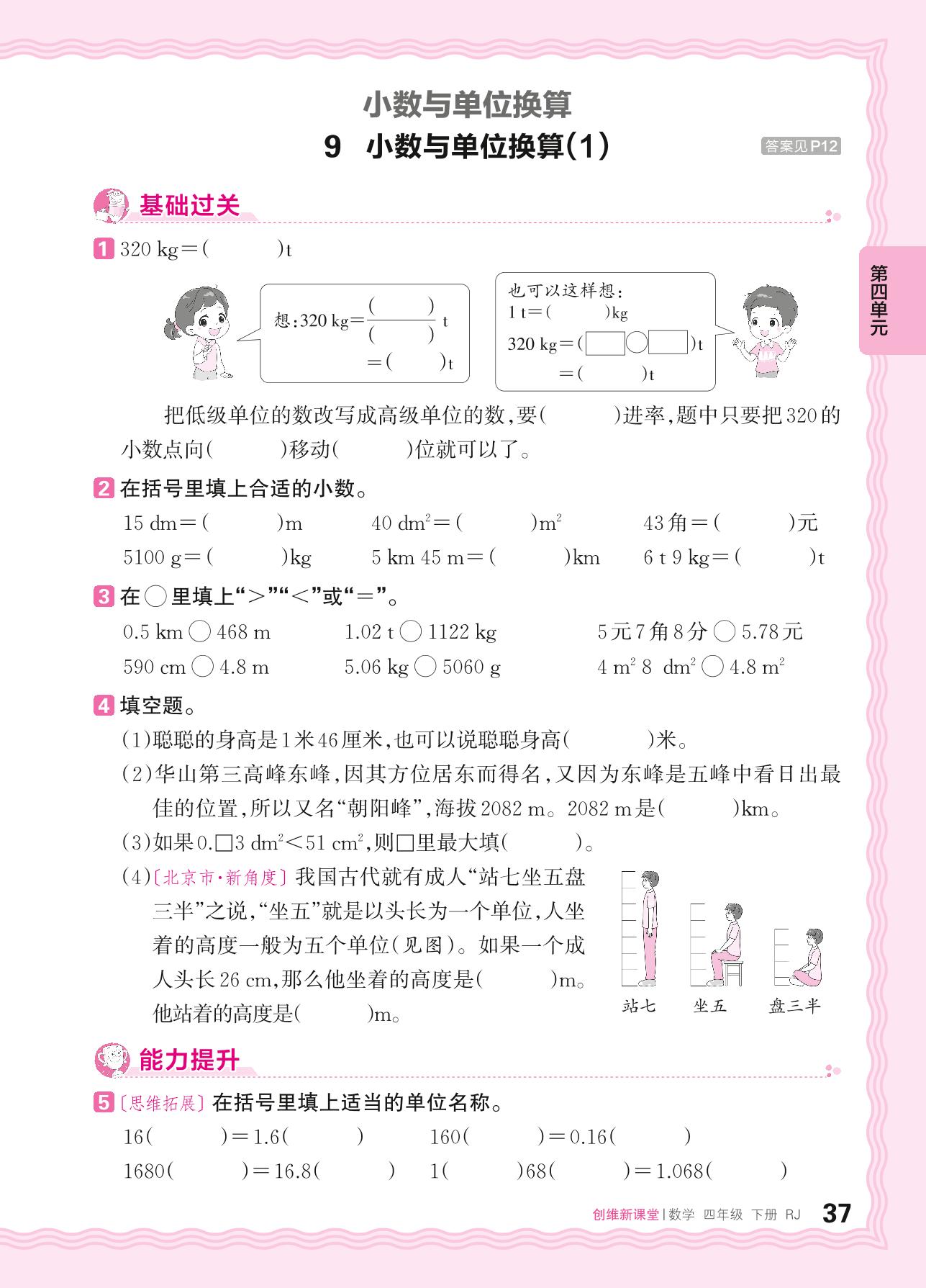 2024春下册四年级数学人教版 第四单元 小数的意义和性质——9. 小数与单位换算(1)_R240122173915792