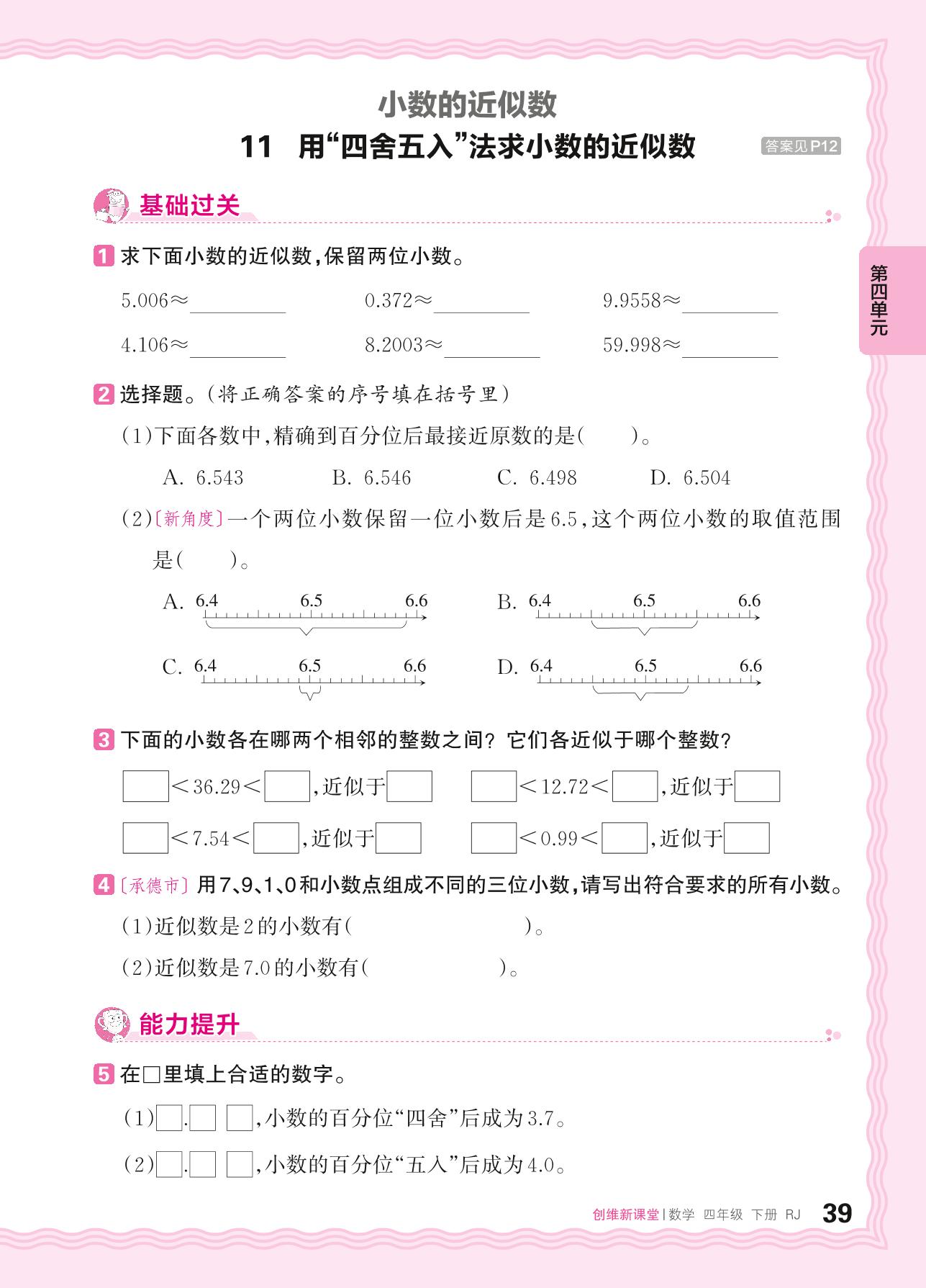 2024春下册四年级数学人教版 第四单元 小数的意义和性质——11. 用“四舍五入”法求小数的近似数