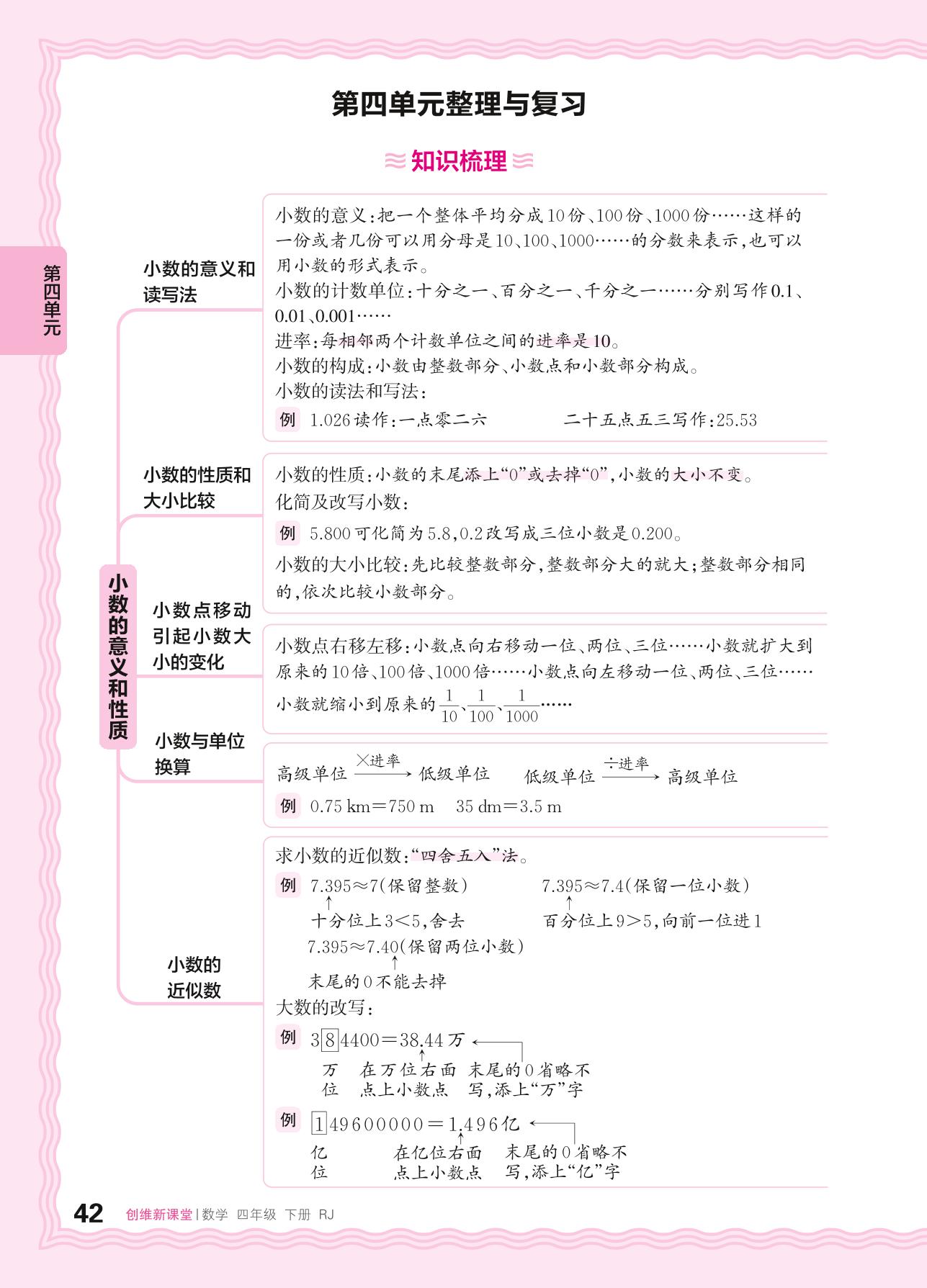 2024春下册四年级数学人教版 第四单元整理与复习