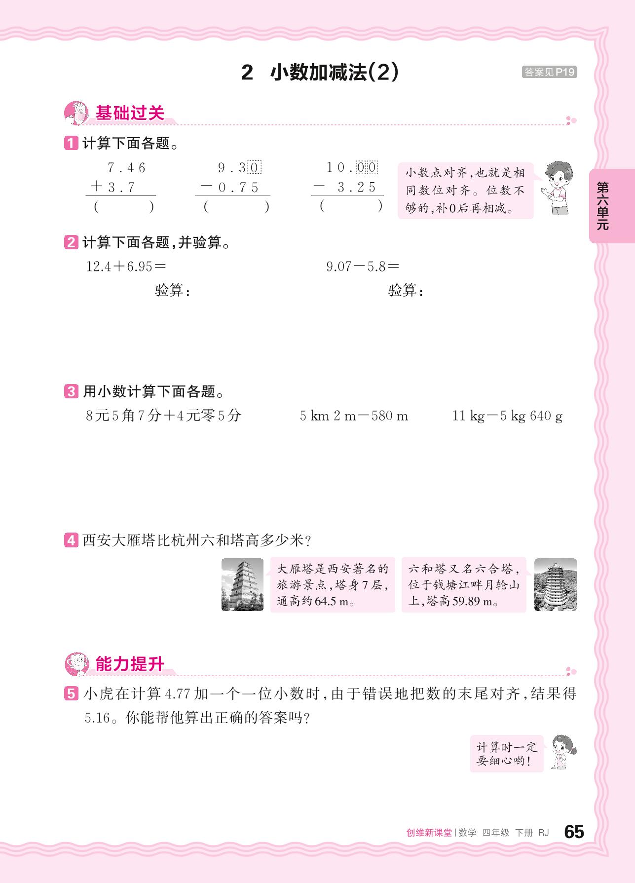2024春下册四年级数学人教版 第六单元 小数的加法和减法——2. 小数加减法(2)_R240122173922353