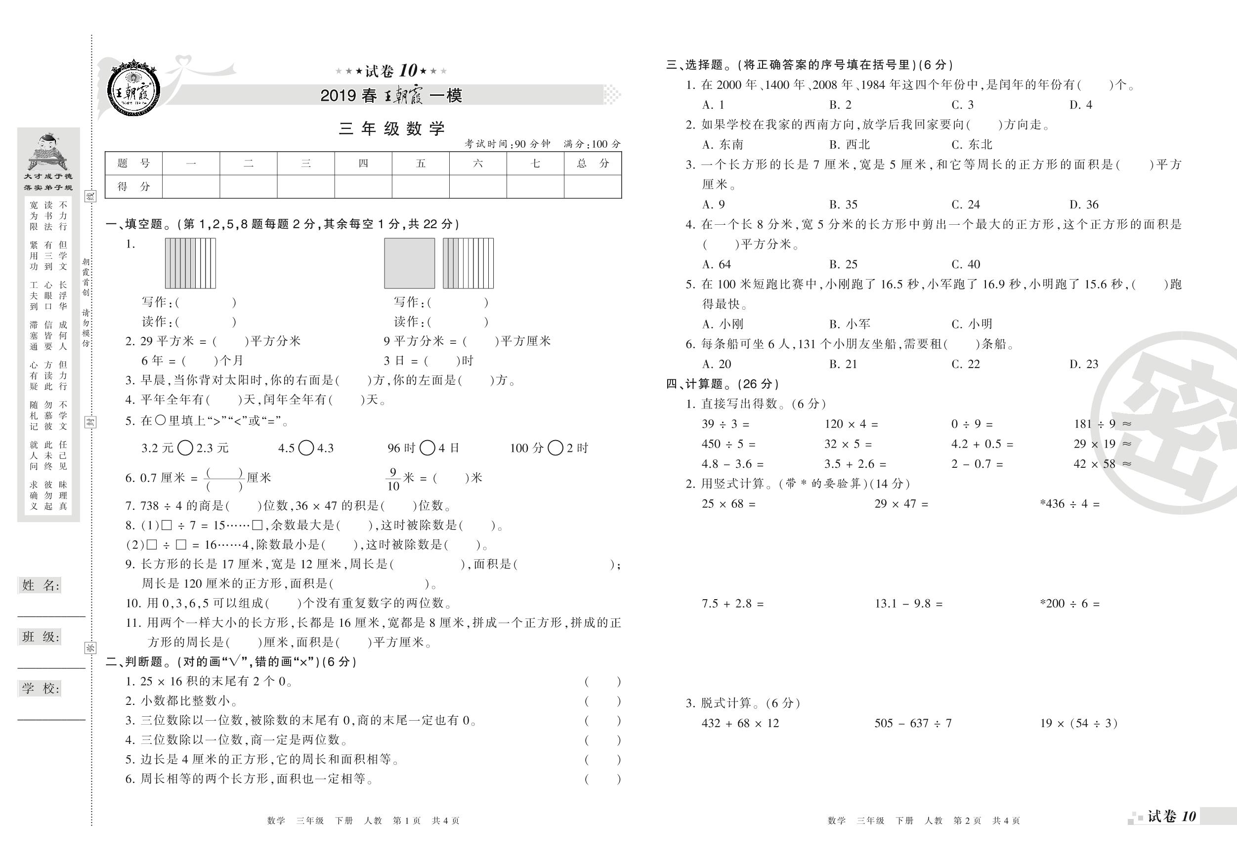 王朝霞期末模拟卷三年级下册数学(人教版)_R210804102623【10】