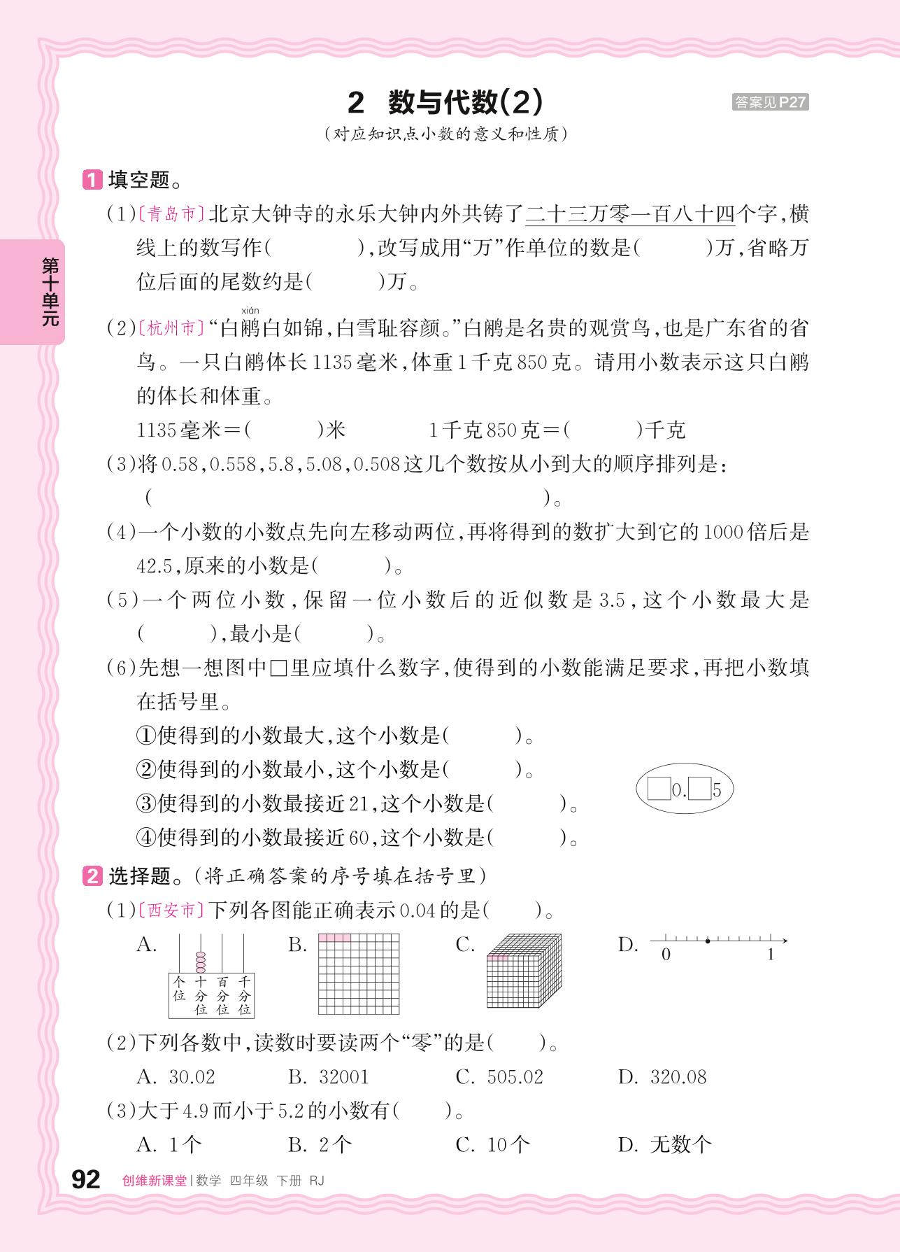 2024春下册四年级数学人教版 第十单元 总复习——2. 数与代数(2)_R240122173930331