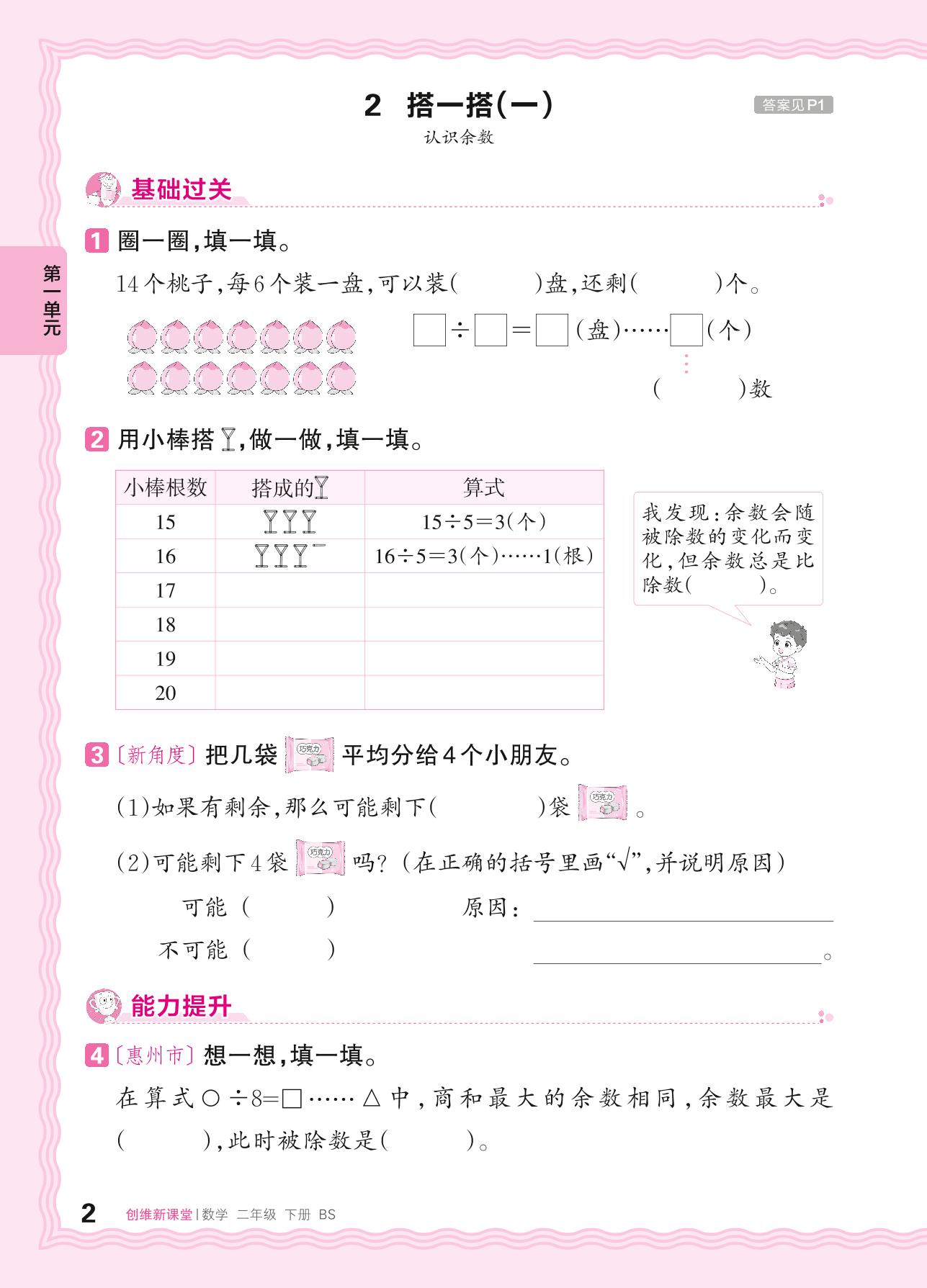 2024春下册二年级数学北师版 第一单元 除法——2. 搭—搭(一)