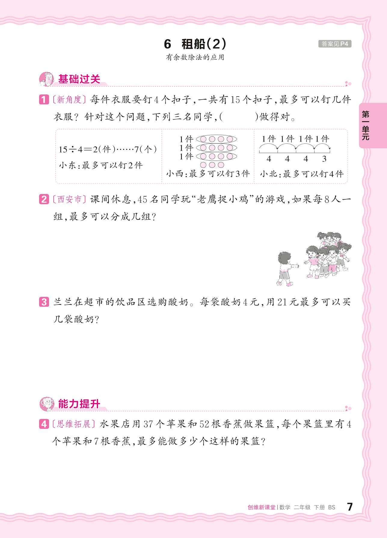 2024春下册二年级数学北师版 第一单元 除法——6. 租船(2)