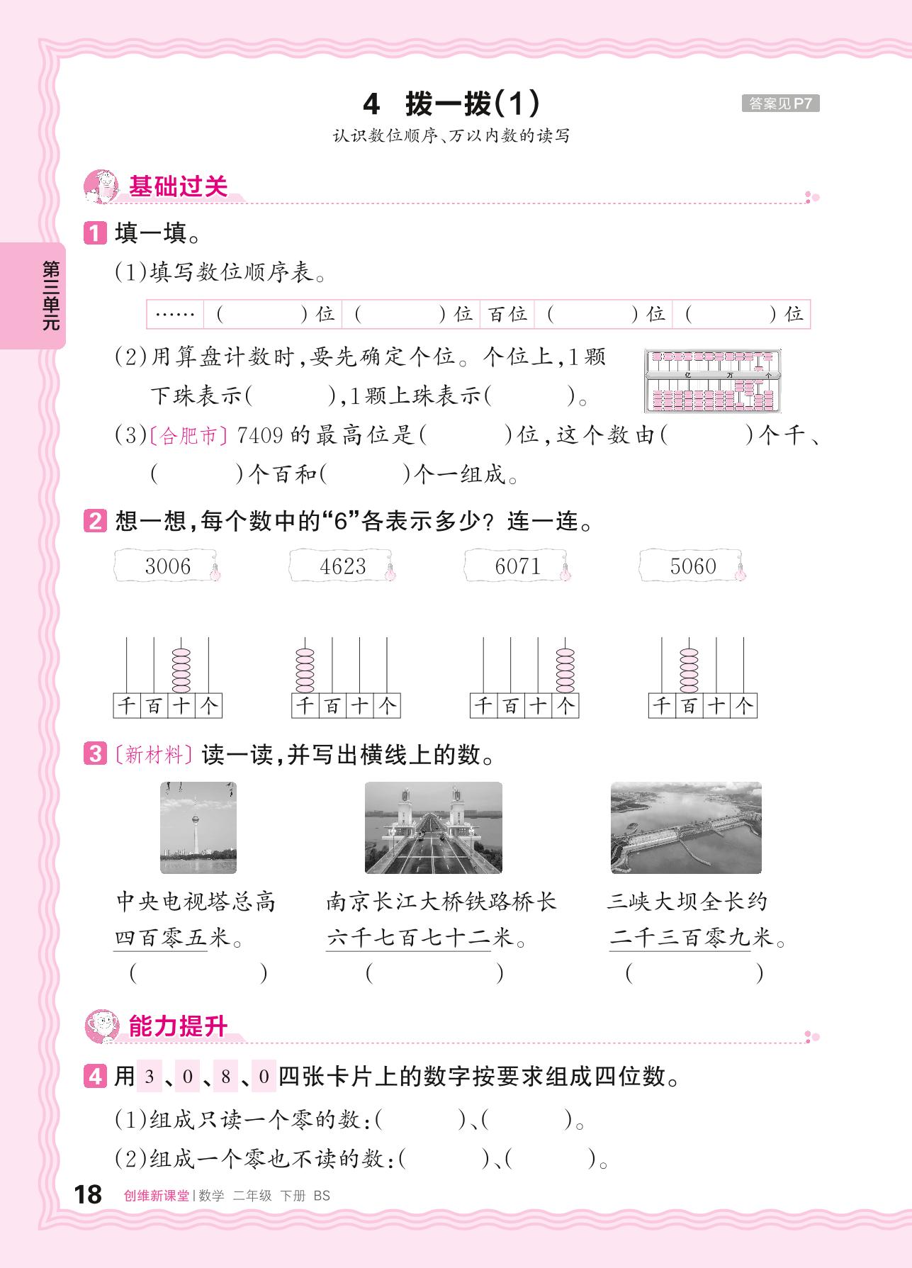2024春下册二年级数学北师版 第三单元 生活中的大数——4. 拨一拨(1)