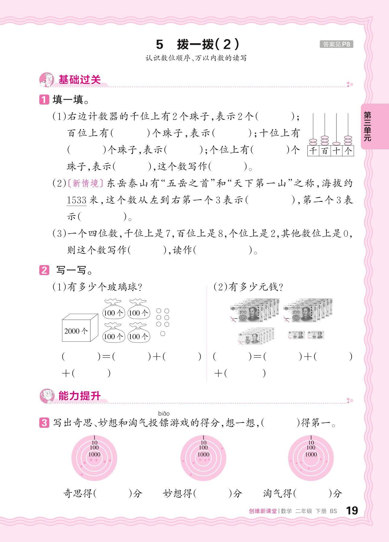 2024春下册二年级数学北师版 第三单元 生活中的大数——5. 拨一拨(2)