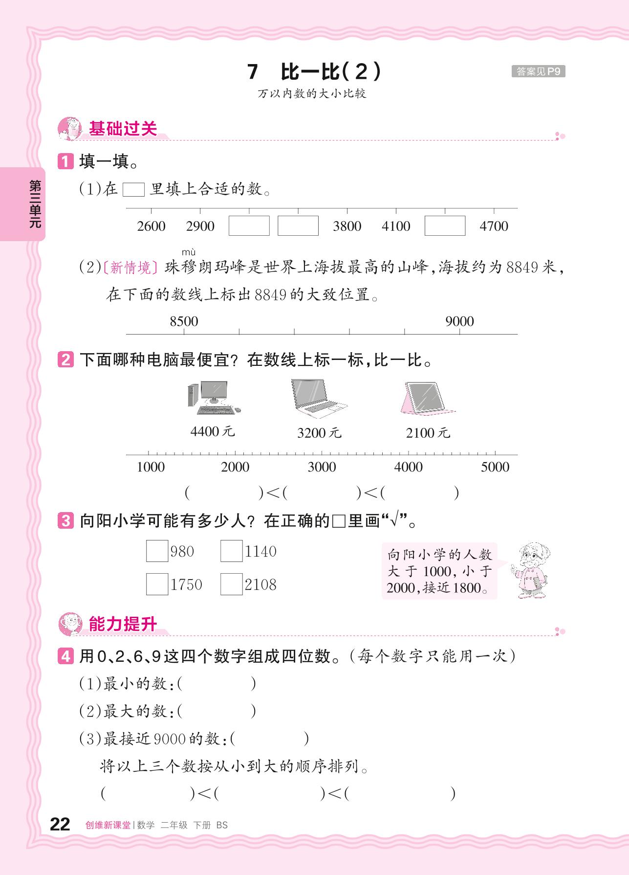 2024春下册二年级数学北师版 第三单元 生活中的大数——7. 比一比(2)