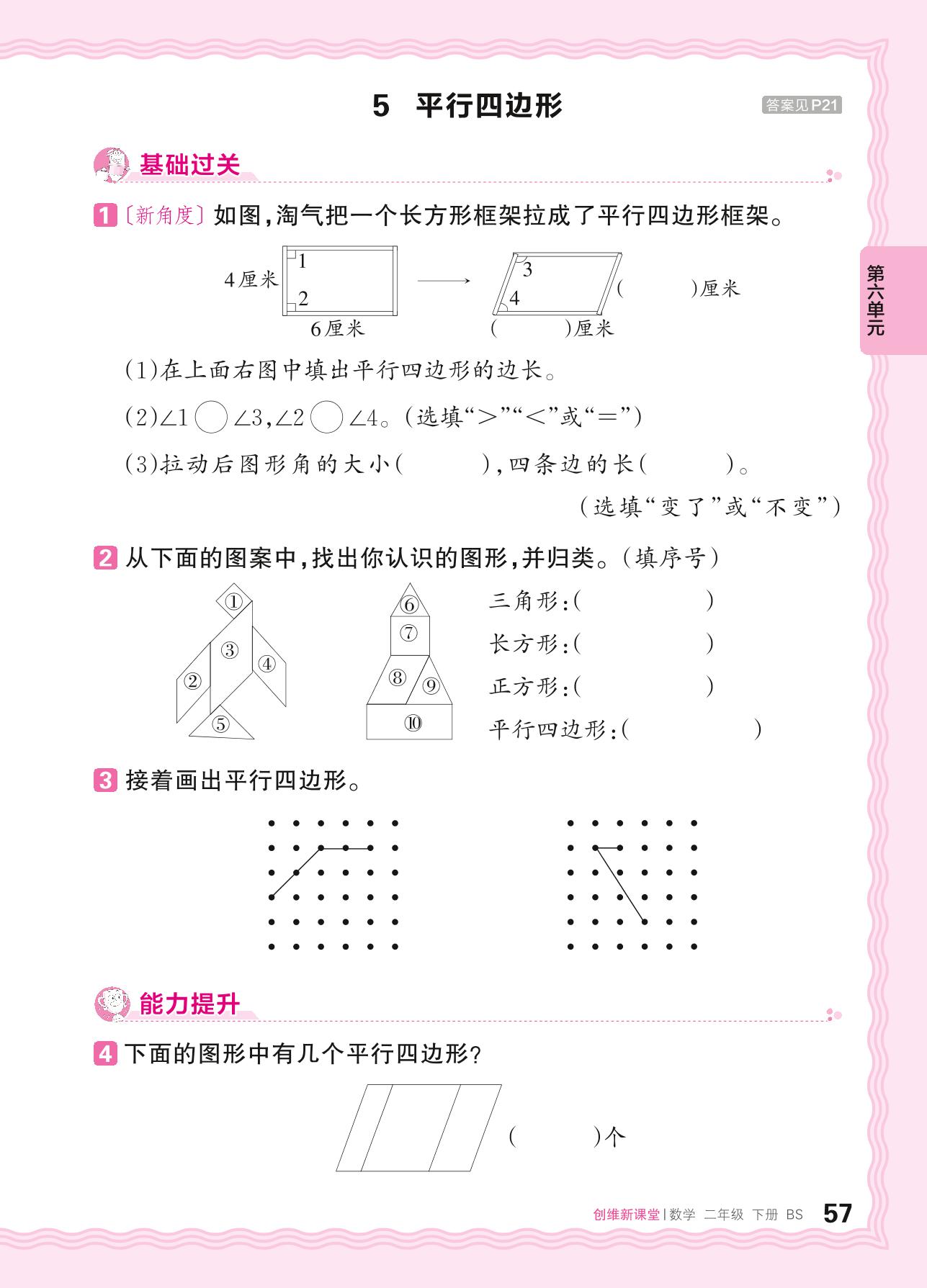 2024春下册二年级数学北师版 第六单元 认识图形——5. 平行四边形