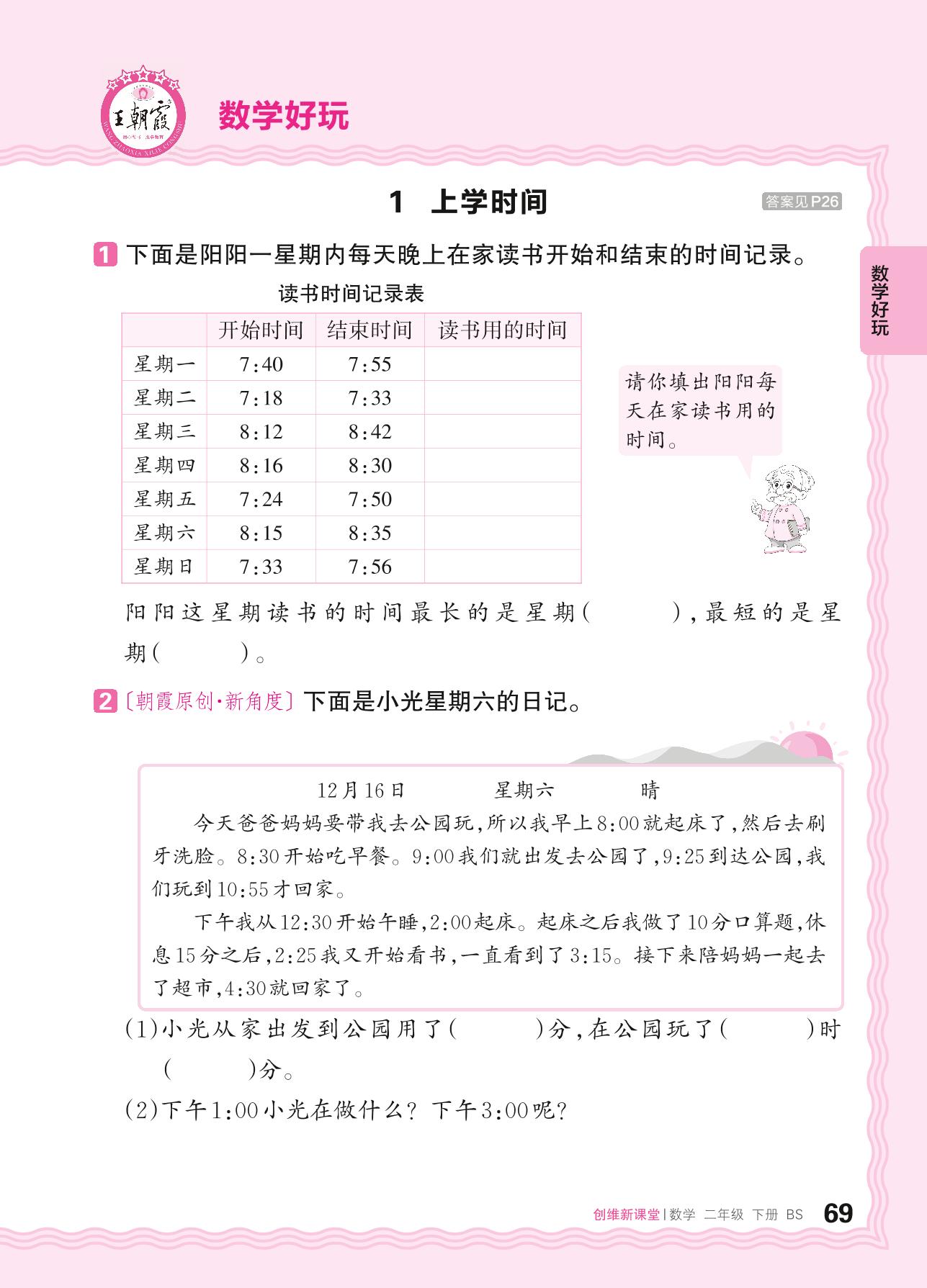 2024春下册二年级数学北师版 数学好玩——1. 上学时间