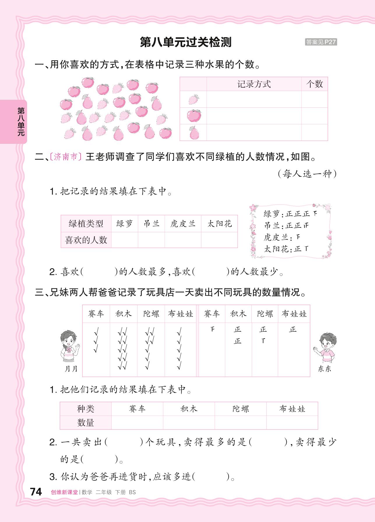 2024春下册二年级数学北师版 第八单元过关检测