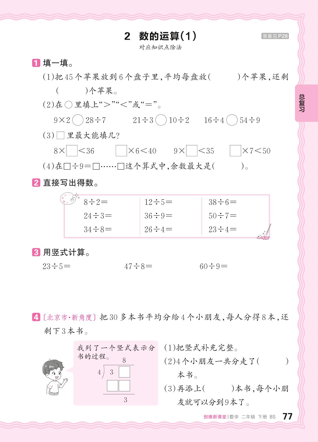 2024春下册二年级数学北师版 总复习——2. 数的运算(1)