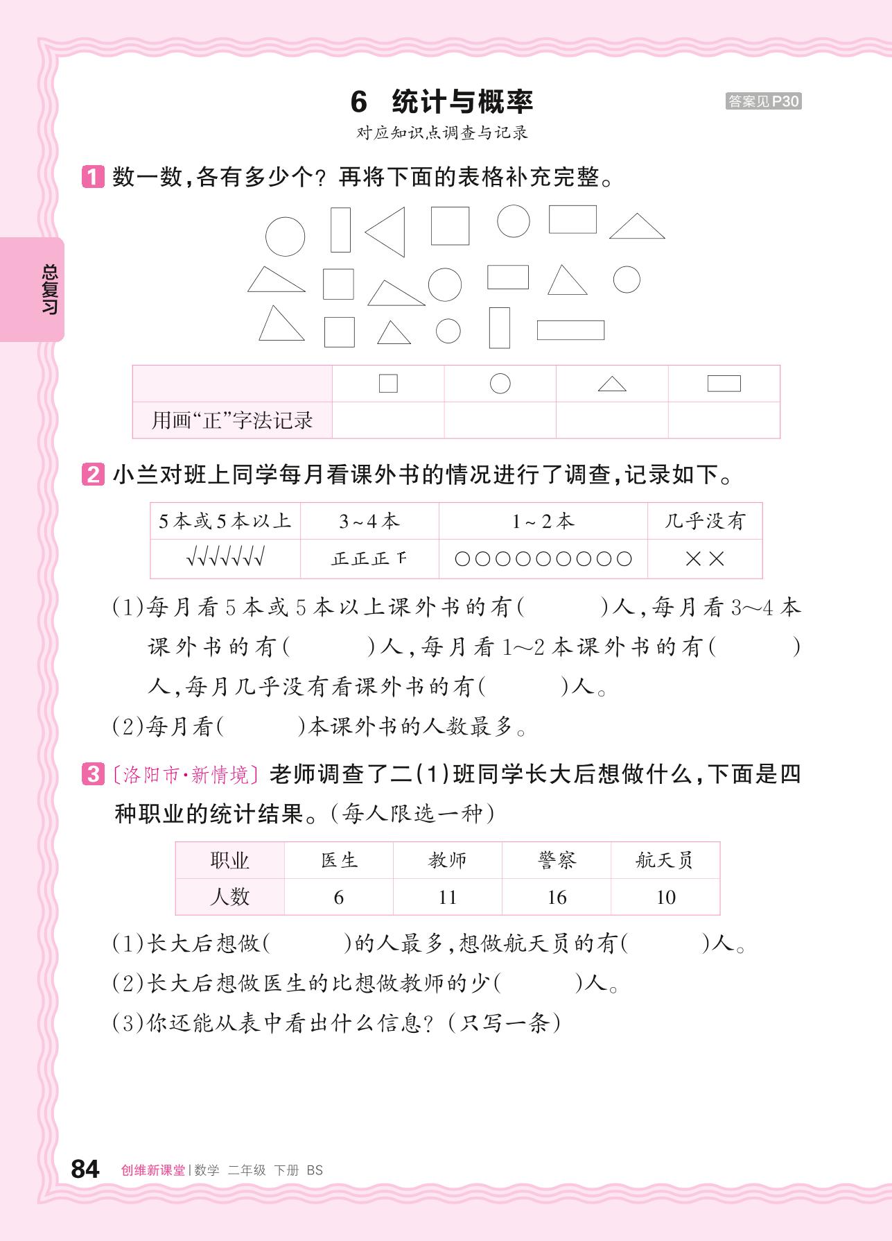 2024春下册二年级数学北师版 总复习——6. 统计与概率
