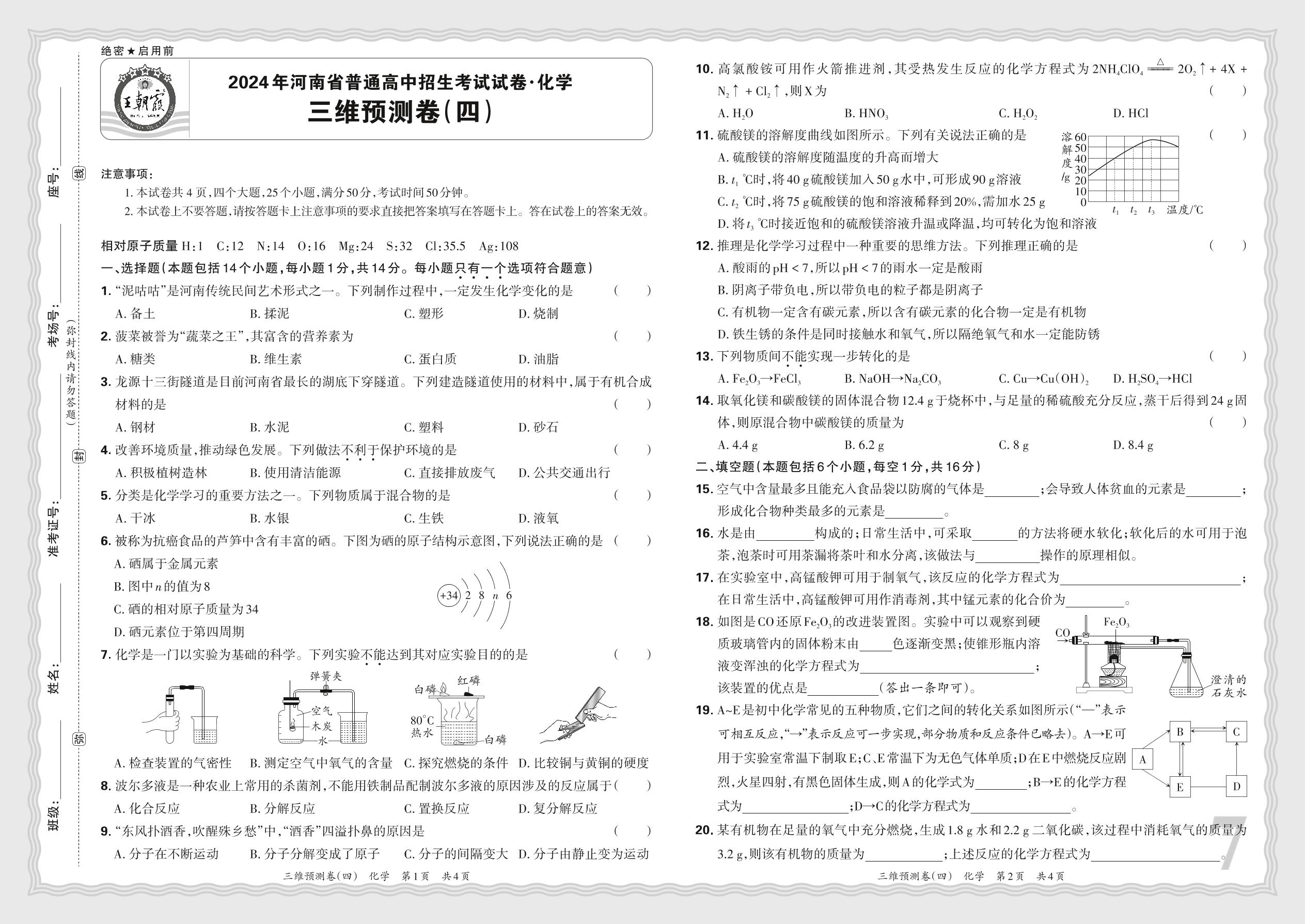 2024年河南省普通高中招生考试试卷·化学 三维预测卷(四)