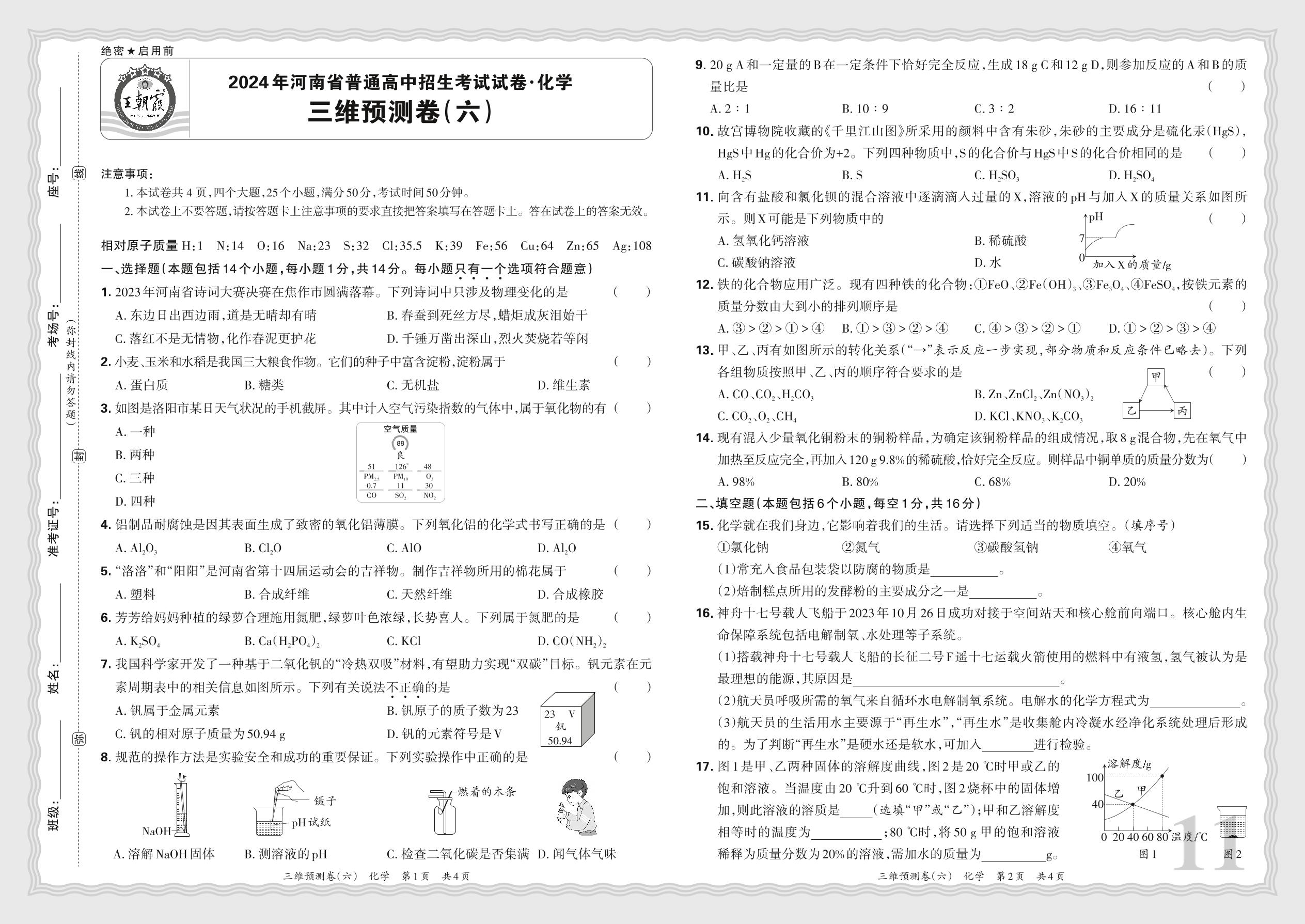 2024年河南省普通高中招生考试试卷·化学 三维预测卷(六)