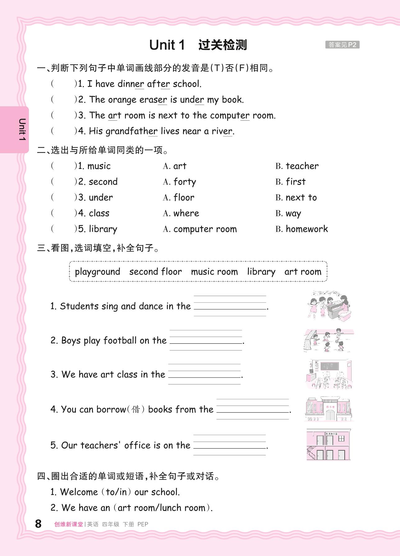 四年级英语人教PEP版(三起始)下册单元卷