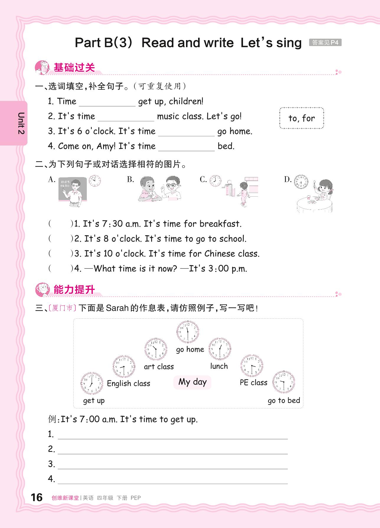 2024春下册四年级英语人教PEP版 Unit 2—Part B(3) Read and write Let’s sing