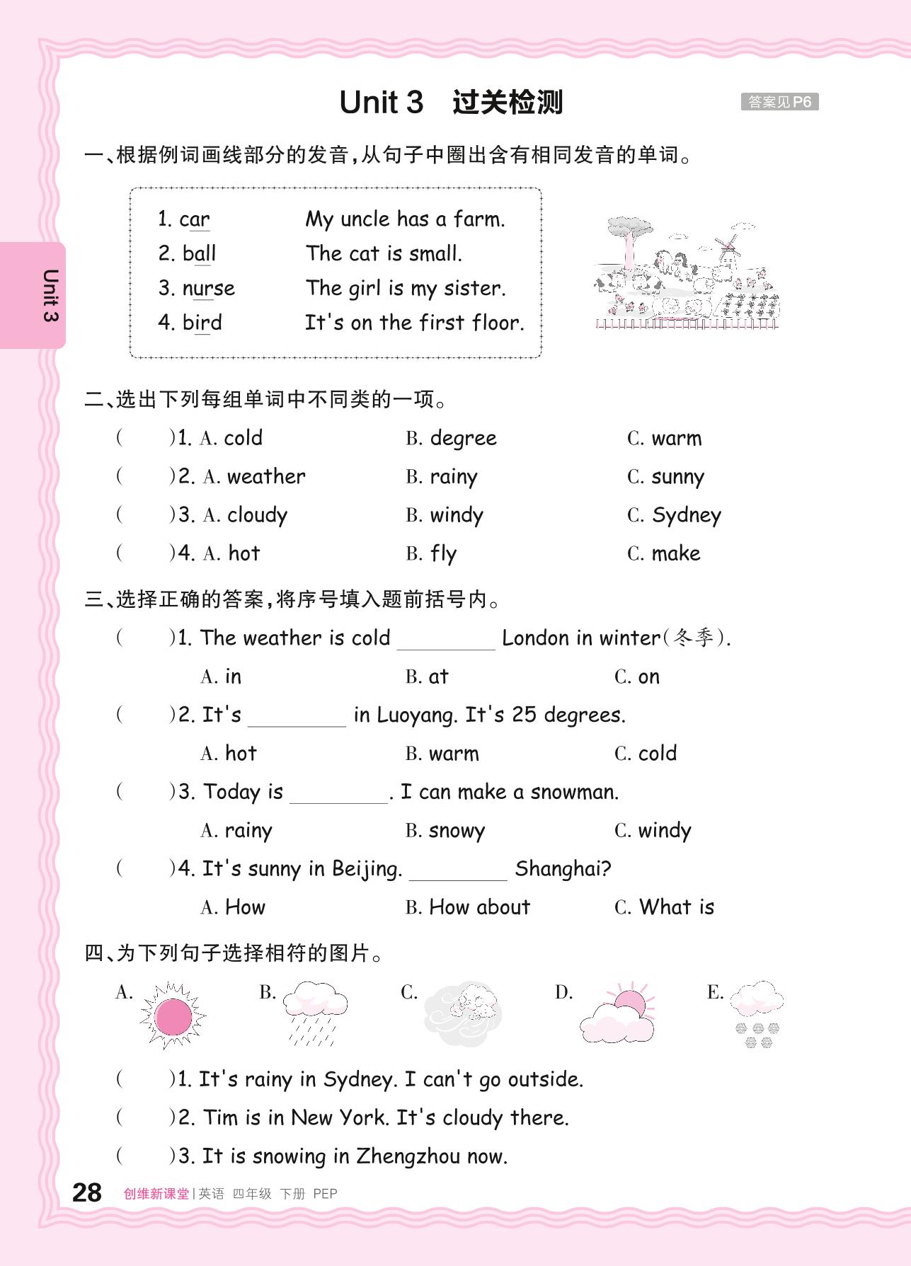 2024春下册四年级英语人教PEP版 Unit 3 过关检测
