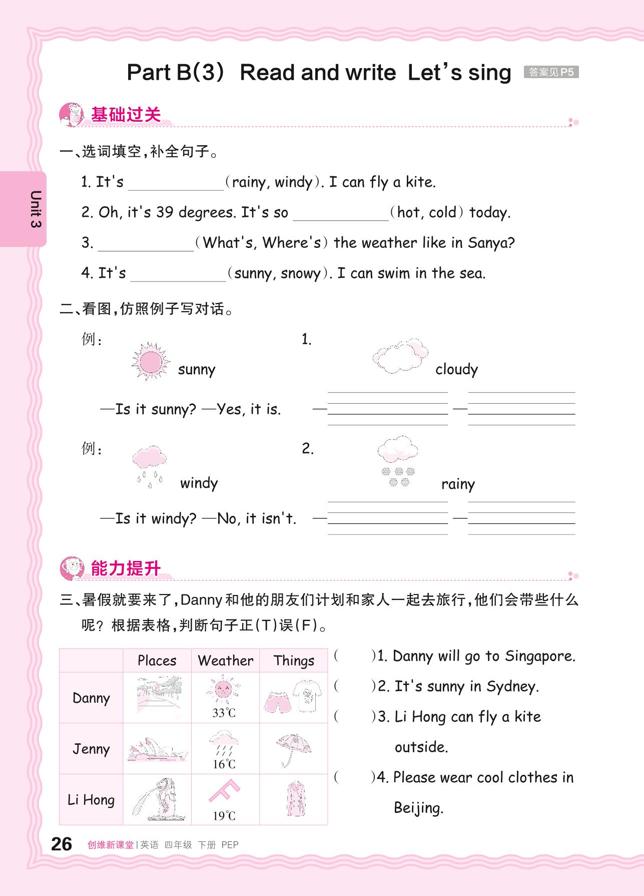 2024春下册四年级英语人教PEP版 Unit 3—Part B(3) Read and write Let’s sing