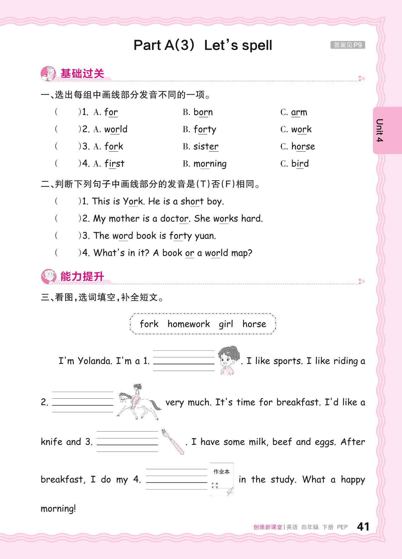 2024春下册四年级英语人教PEP版 Unit 4—Part A(3) Let’s spell