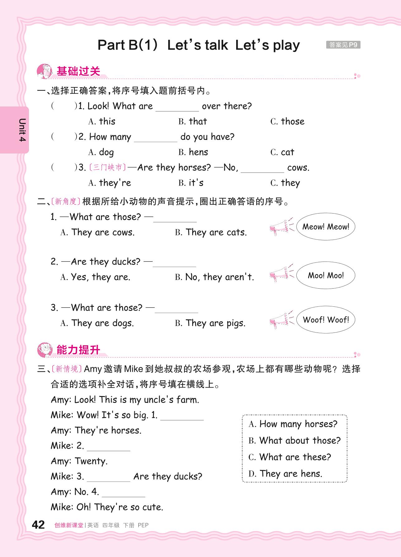 2024春下册四年级英语人教PEP版 Unit 4—Part B(1) Let’s talk Let’s play