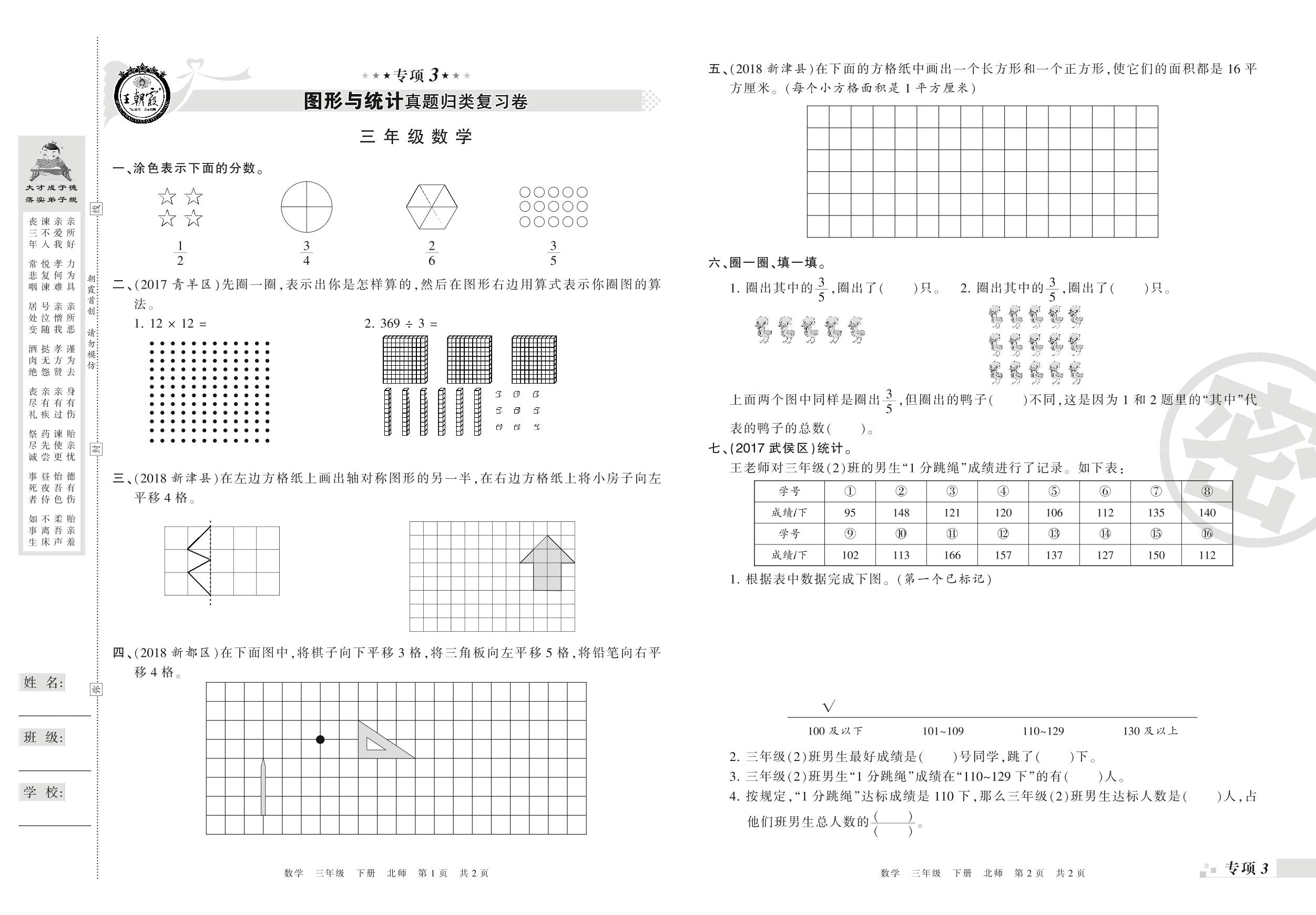王朝霞期末专项卷——图形与统计、解决问题真题归类复习卷三年级下册数学(北师版)_R210804102810【0】