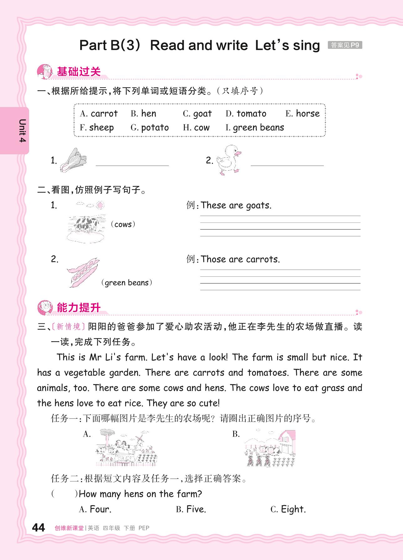 2024春下册四年级英语人教PEP版 Unit 4—Part B(3) Read and write Let’s sing