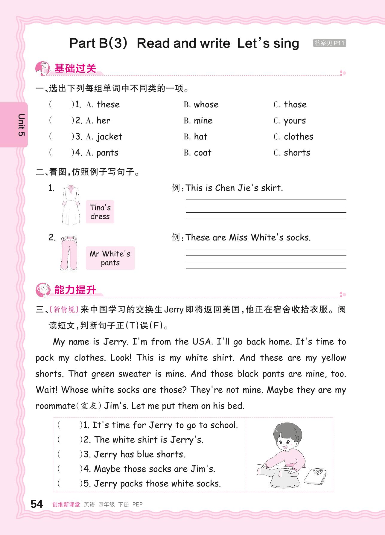 2024春下册四年级英语人教PEP版 Unit 5—Part B(3) Read and write Let’s sing