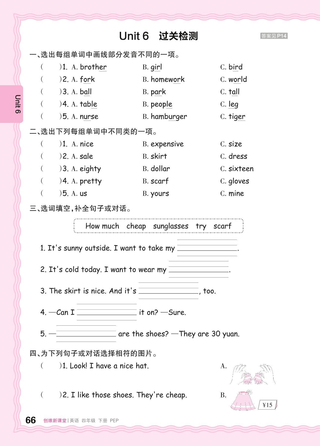 四年级英语人教PEP版(三起始)下册单元卷