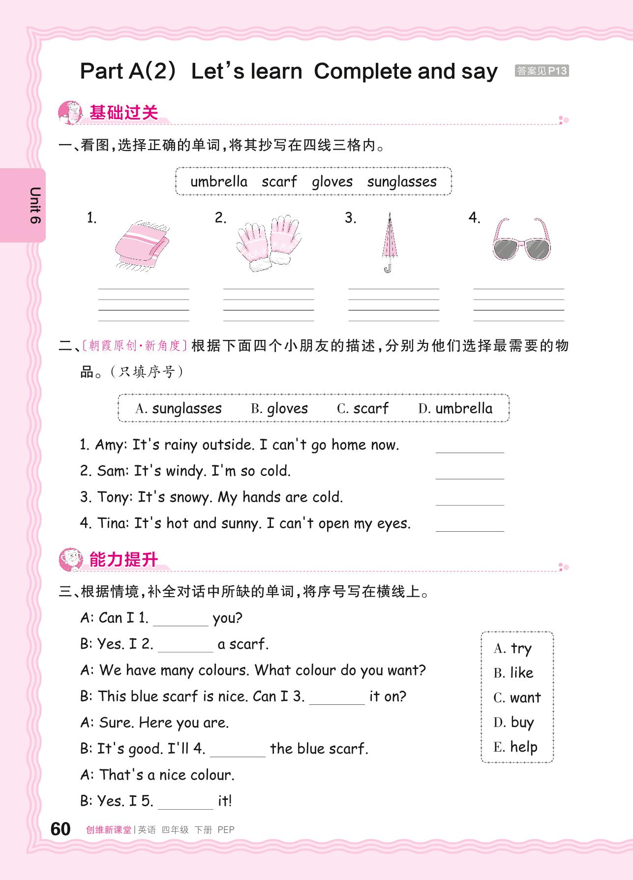 2024春下册四年级英语人教PEP版 Unit 6—Part A(2) Let’s learn Complete and say