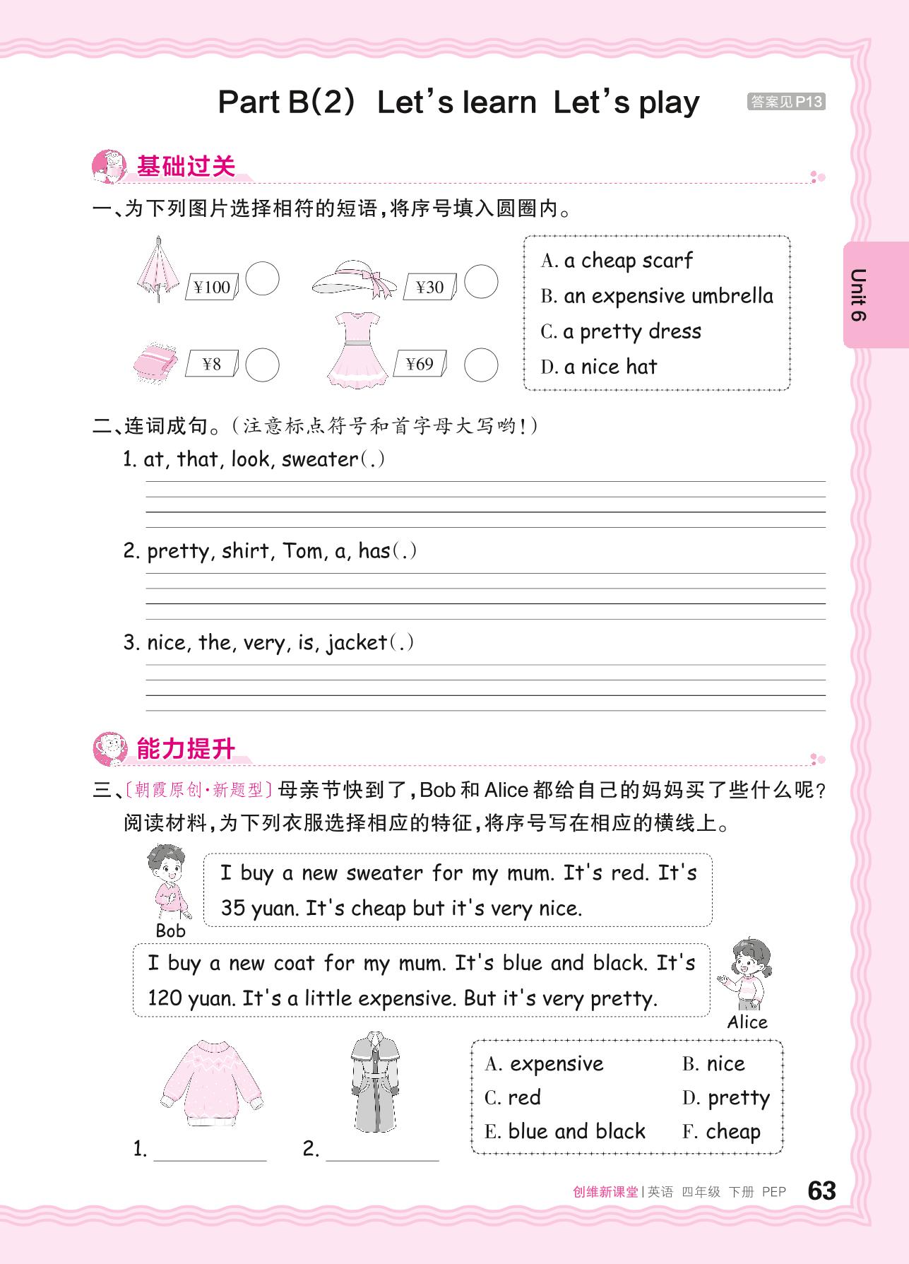 2024春下册四年级英语人教PEP版 Unit 6—Part B(2) Let’s learn Let’s play