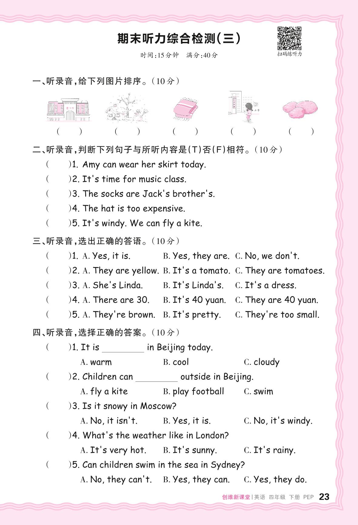 2024春下册四年级英语人教PEP版 期末听力综合检测(三)