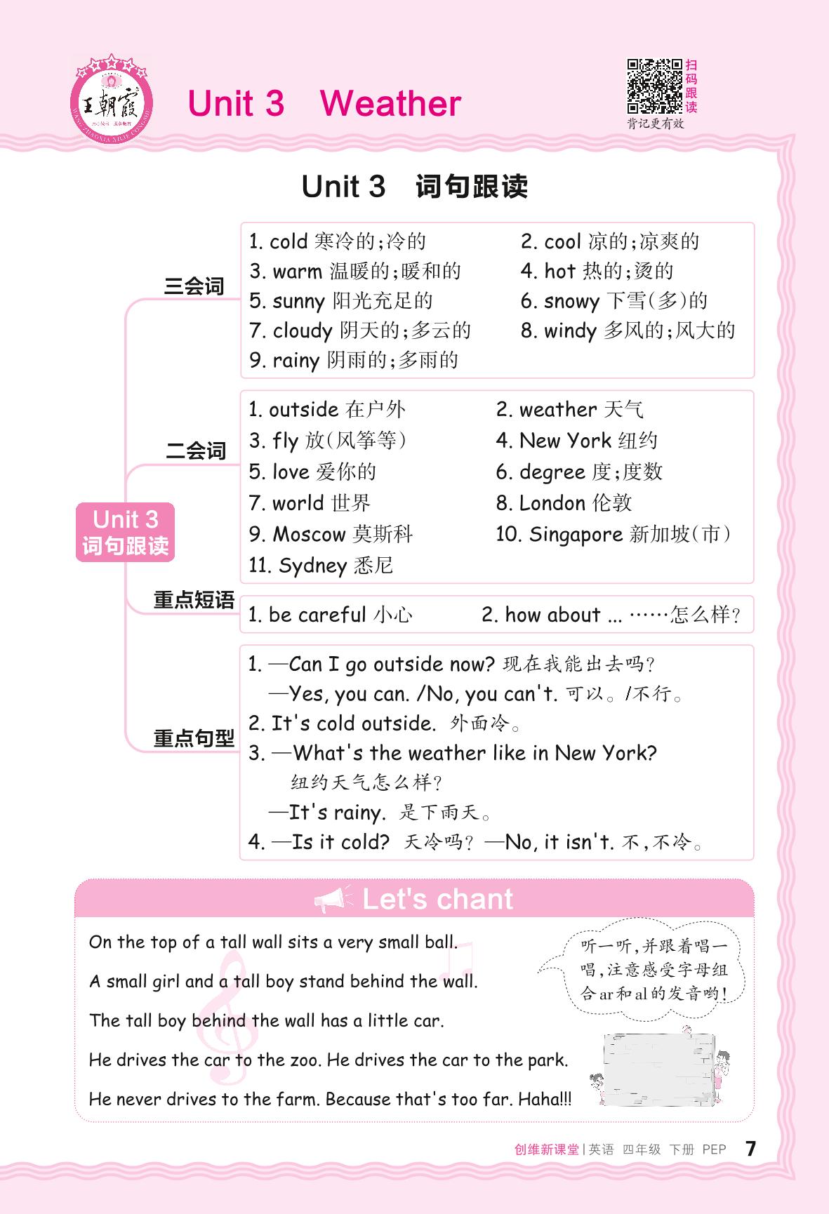2024春下册四年级英语人教PEP版 Unit 3 词句跟读
