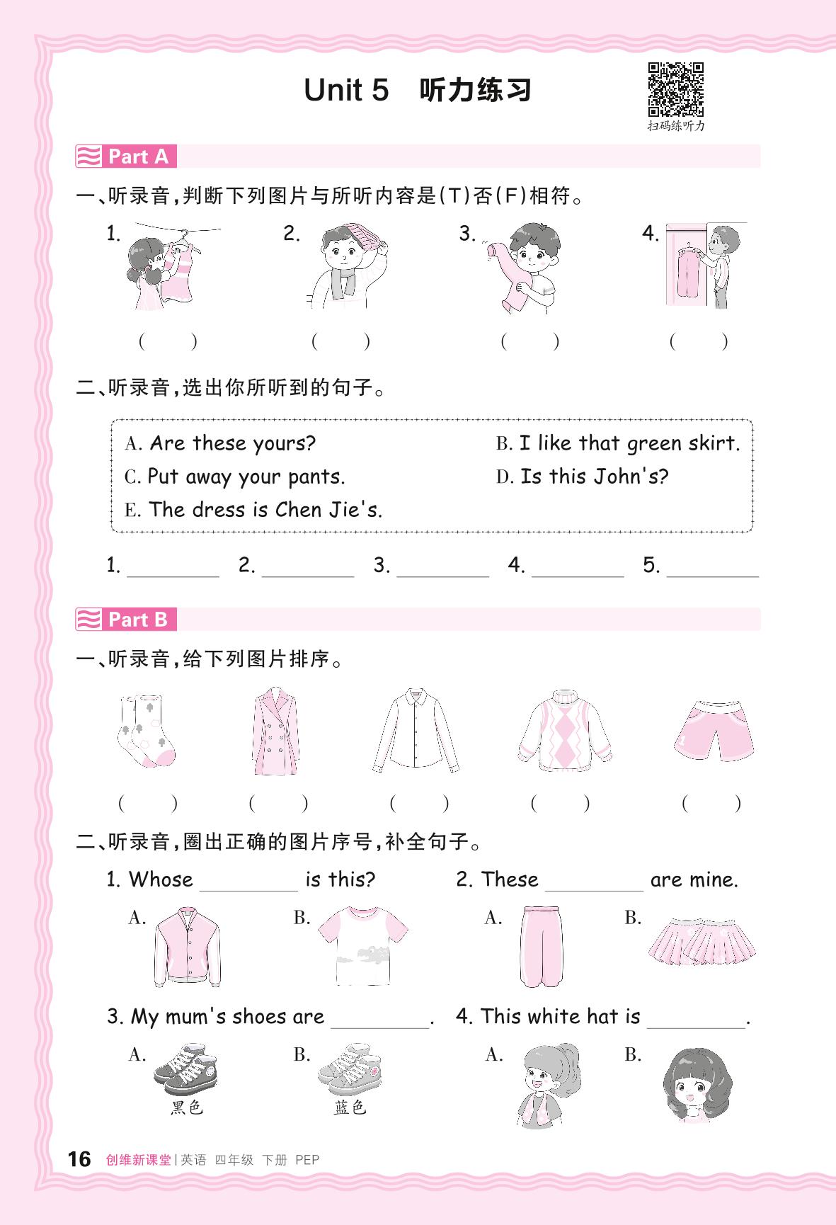 2024春下册四年级英语人教PEP版 Unit 5 听力练习