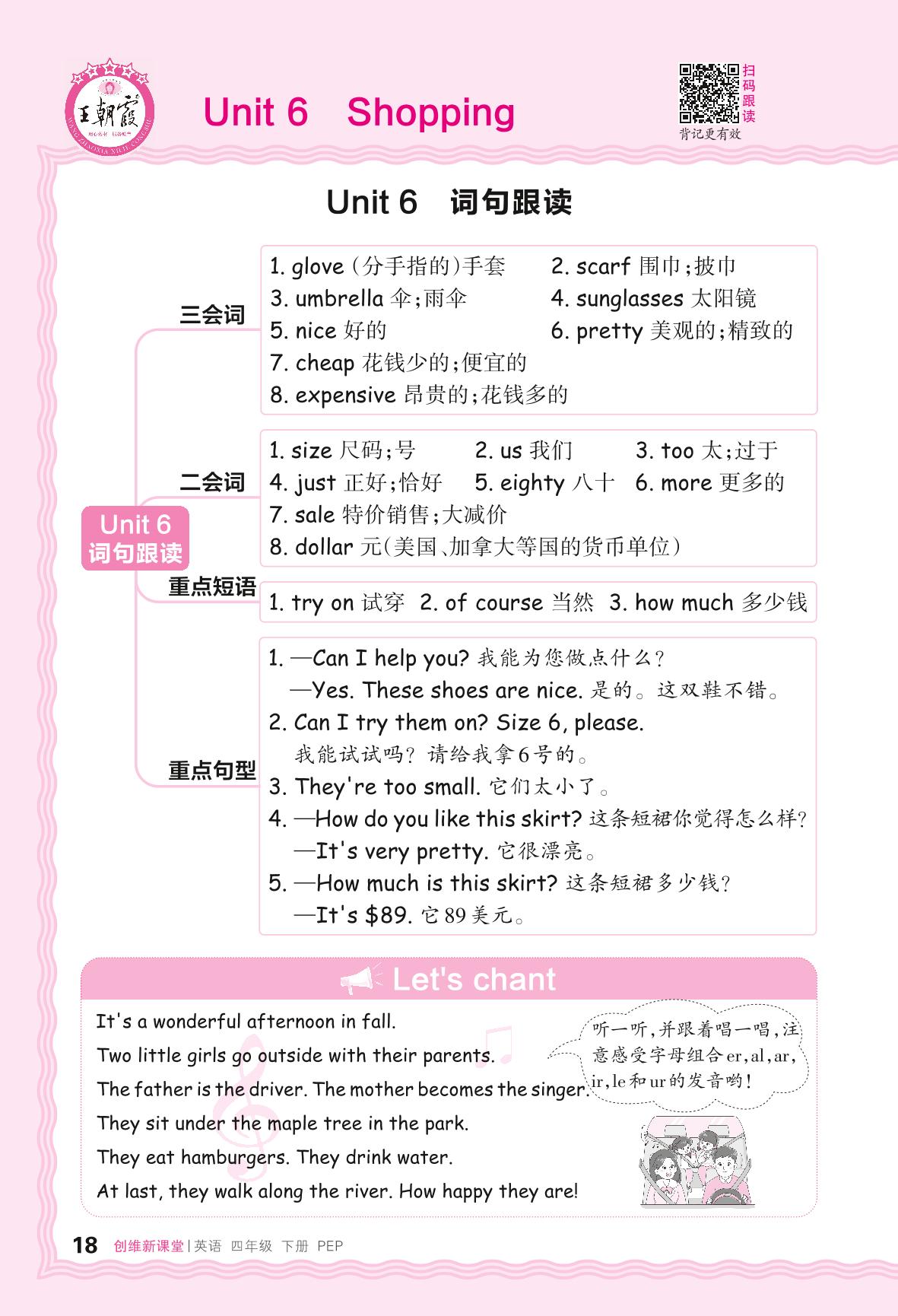 2024春下册四年级英语人教PEP版 Unit 6 词句跟读