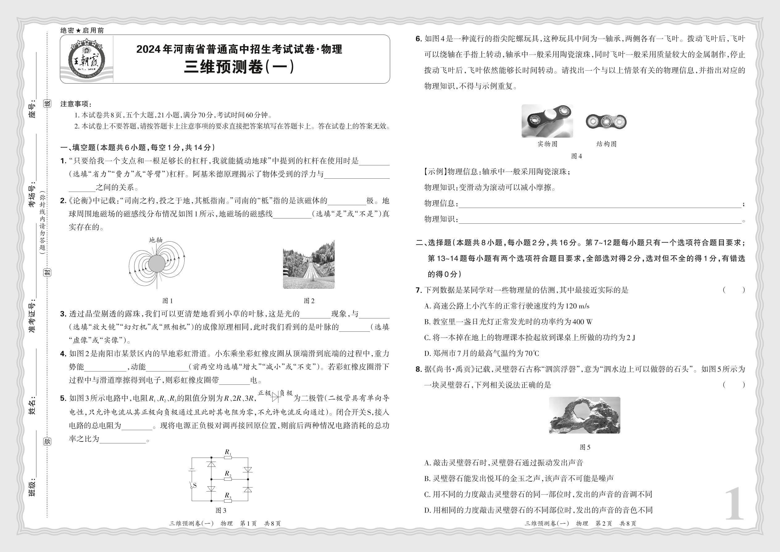 2024年河南省普通高中招生考试试卷·物理 三维预测卷(一)