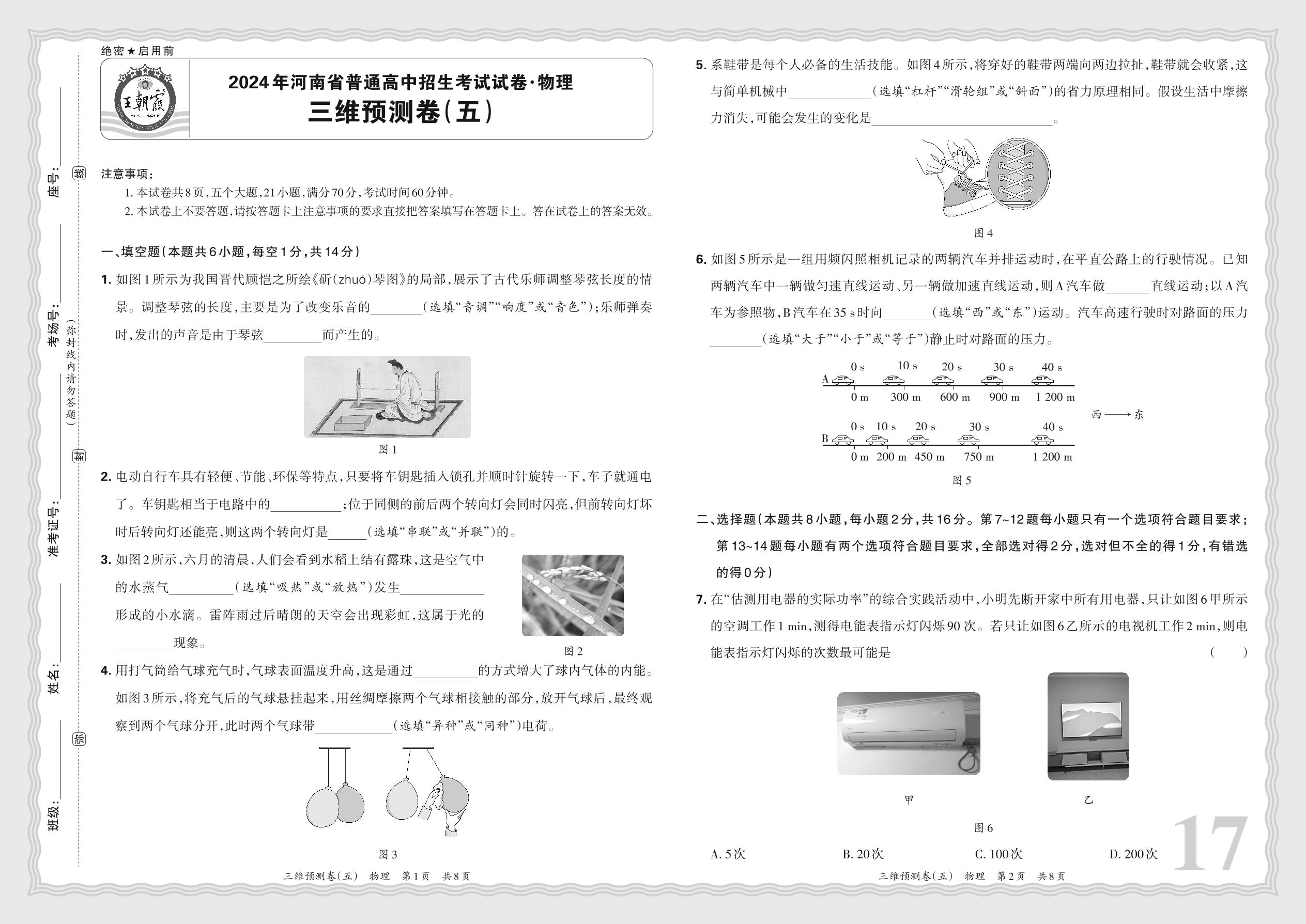 2024年河南省普通高中招生考试试卷·物理 三维预测卷(五)