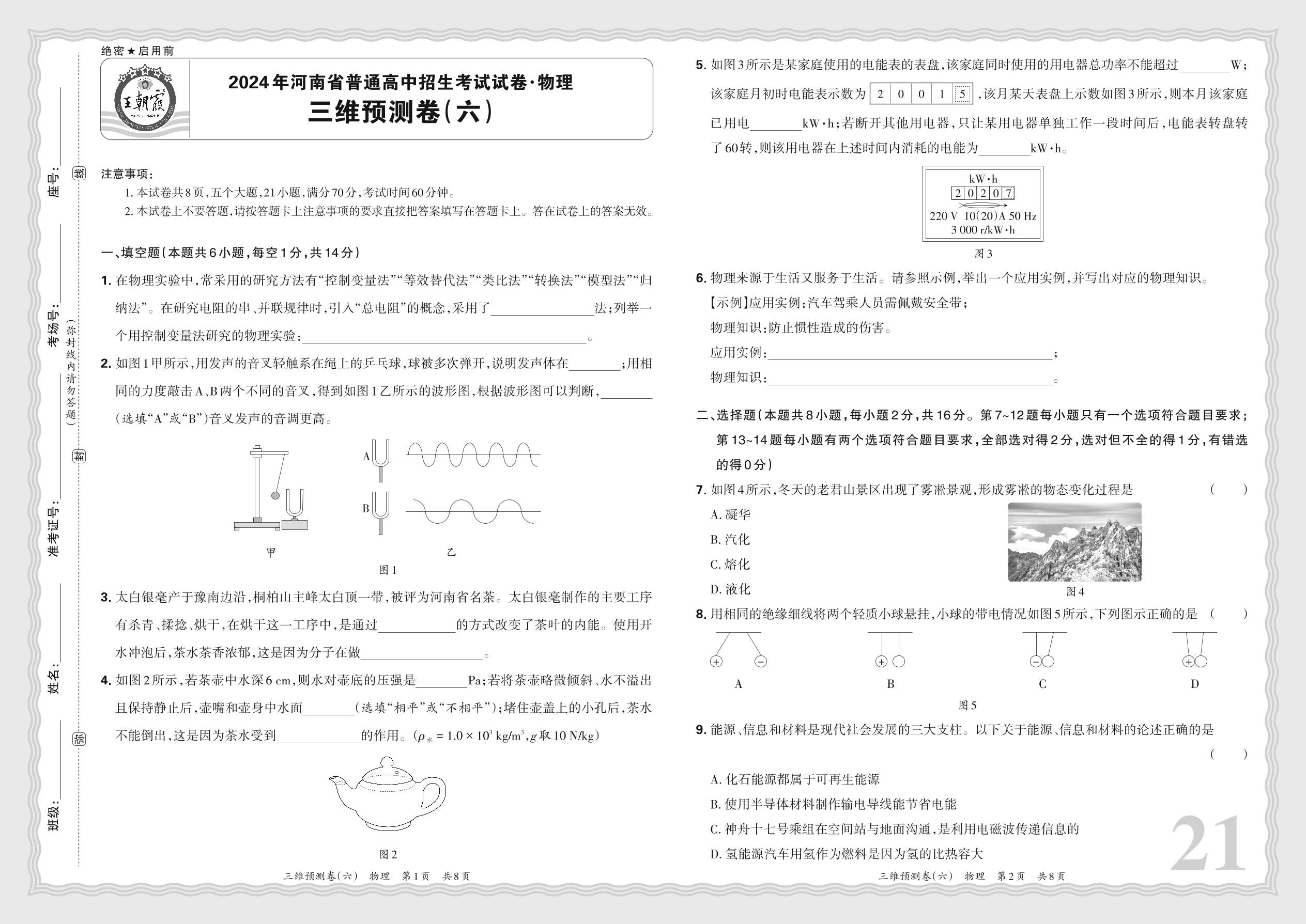 2024年河南省普通高中招生考试试卷·物理 三维预测卷(六)
