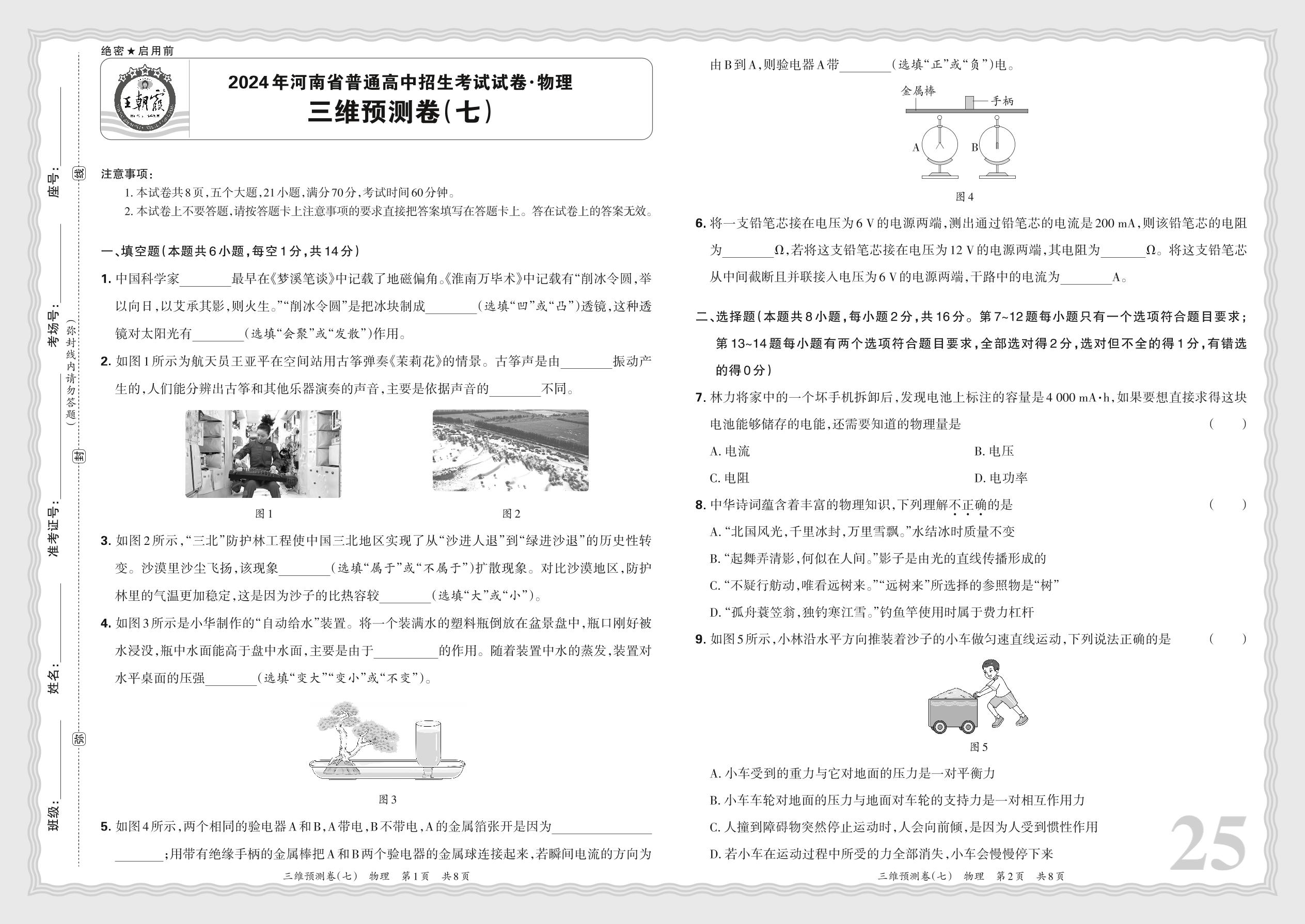 2024年河南省普通高中招生考试试卷·物理 三维预测卷(七)
