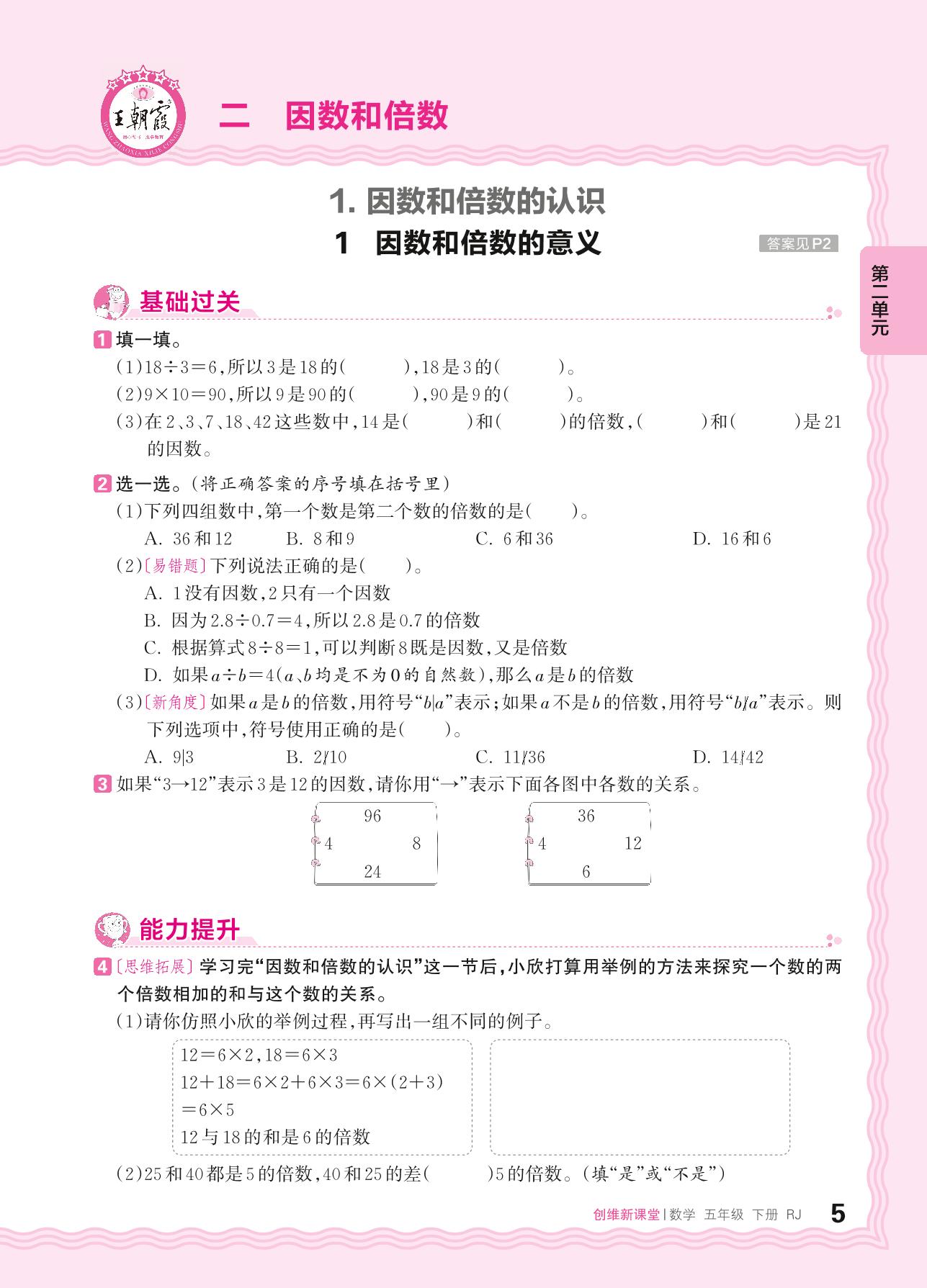 2024春下册五年级数学人教版 第二单元 因数和倍数——1. 因数和倍数的意义