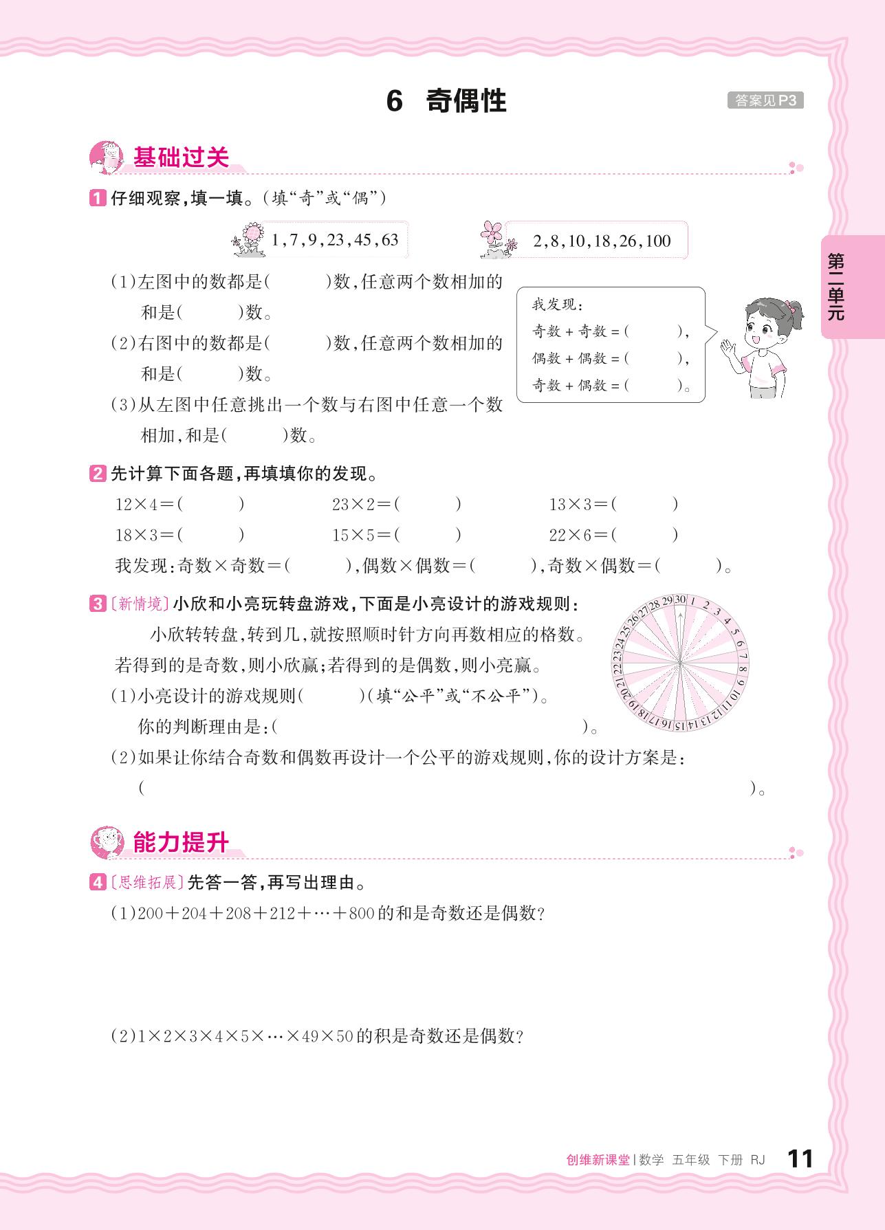 2024春下册五年级数学人教版 第二单元 因数和倍数——6. 奇偶性