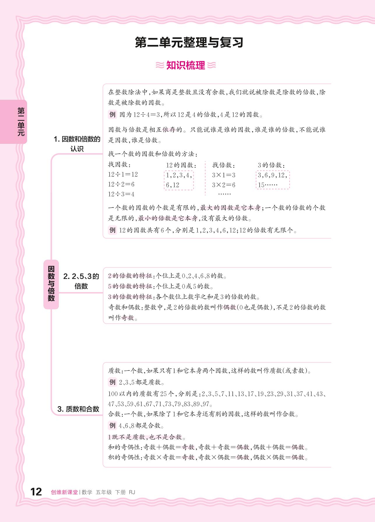 2024春下册五年级数学人教版 第二单元整理与复习