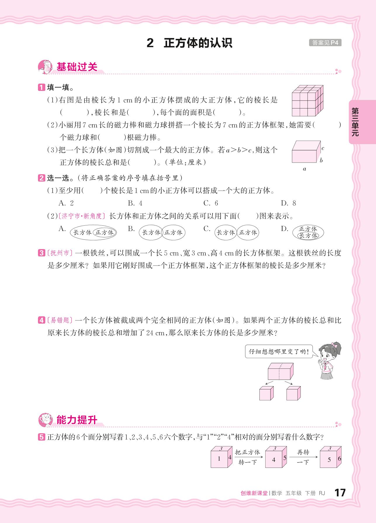 2024春下册五年级数学人教版 第三单元 长方体和正方体——2. 正方体的认识