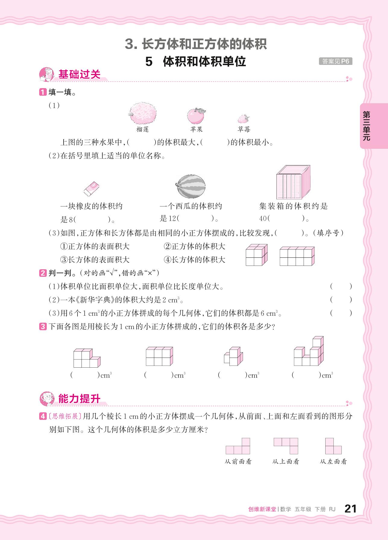 2024春下册五年级数学人教版 第三单元 长方体和正方体——5. 体积和体积单位_R240122180300091