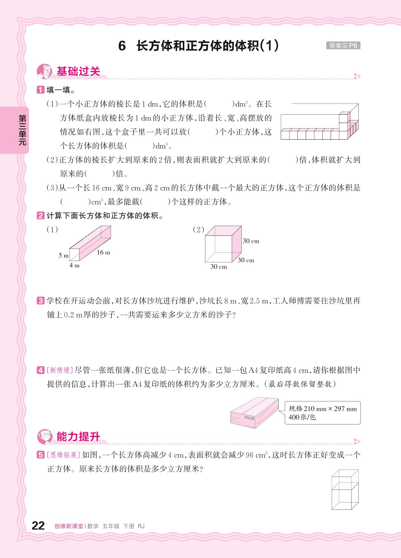 2024春下册五年级数学人教版 第三单元 长方体和正方体——6. 长方体和正方体的体积(1)_R240122180301513