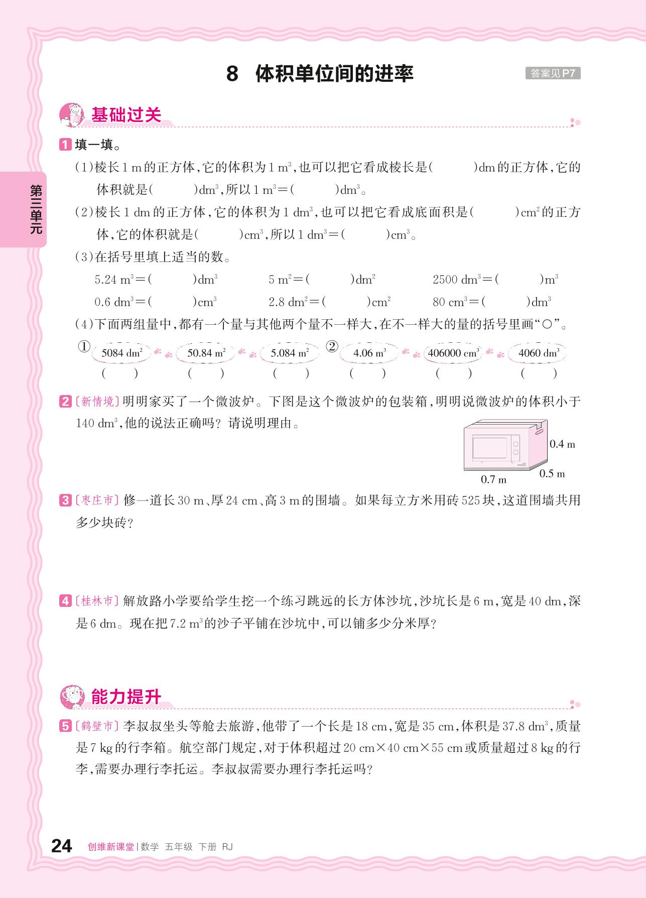2024春下册五年级数学人教版 第三单元 长方体和正方体——8. 体积单位间的进率