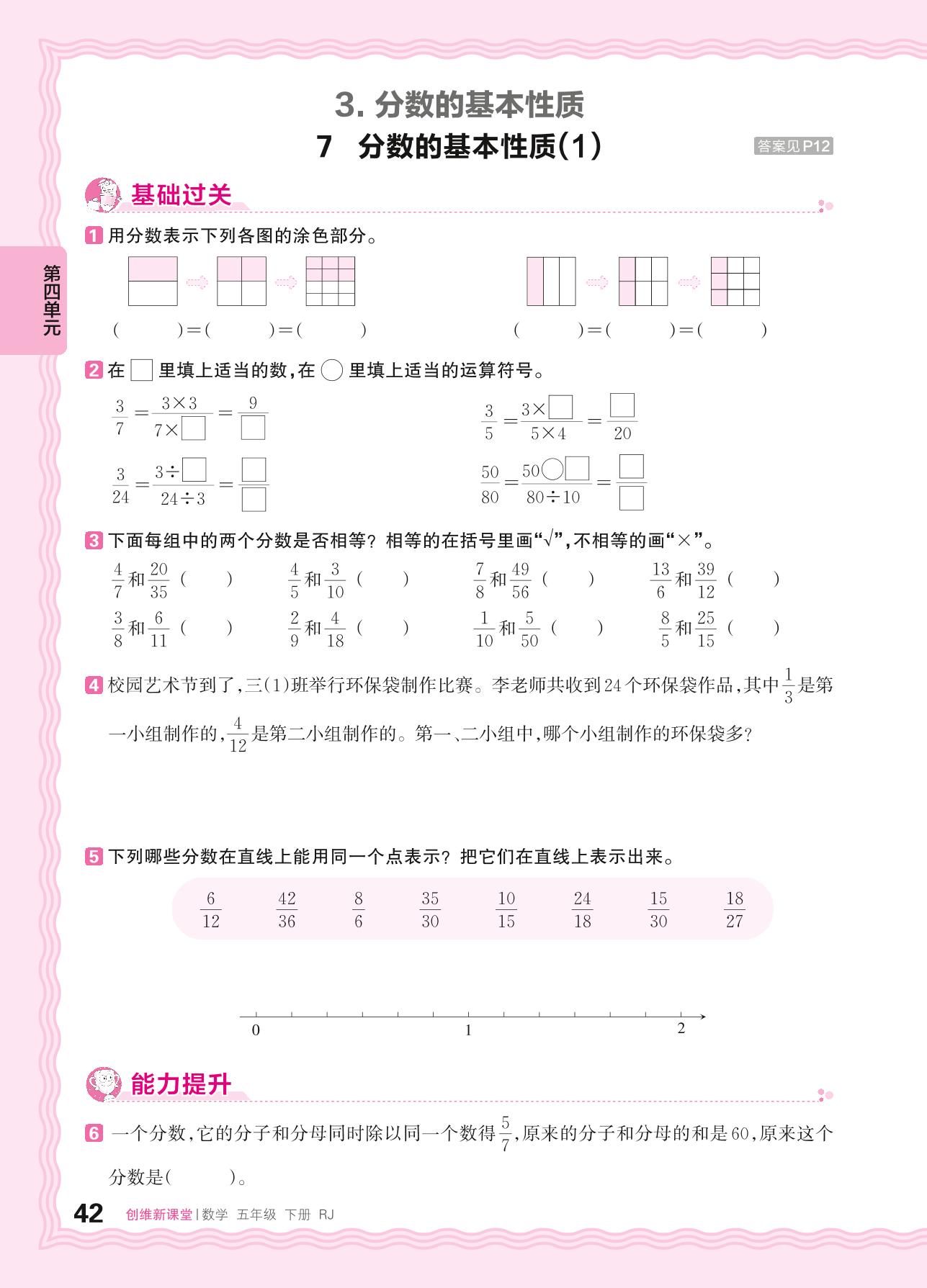 2024春下册五年级数学人教版 第四单元 分数的意义和性质——7. 分数的基本性质(1)_R240122180307264