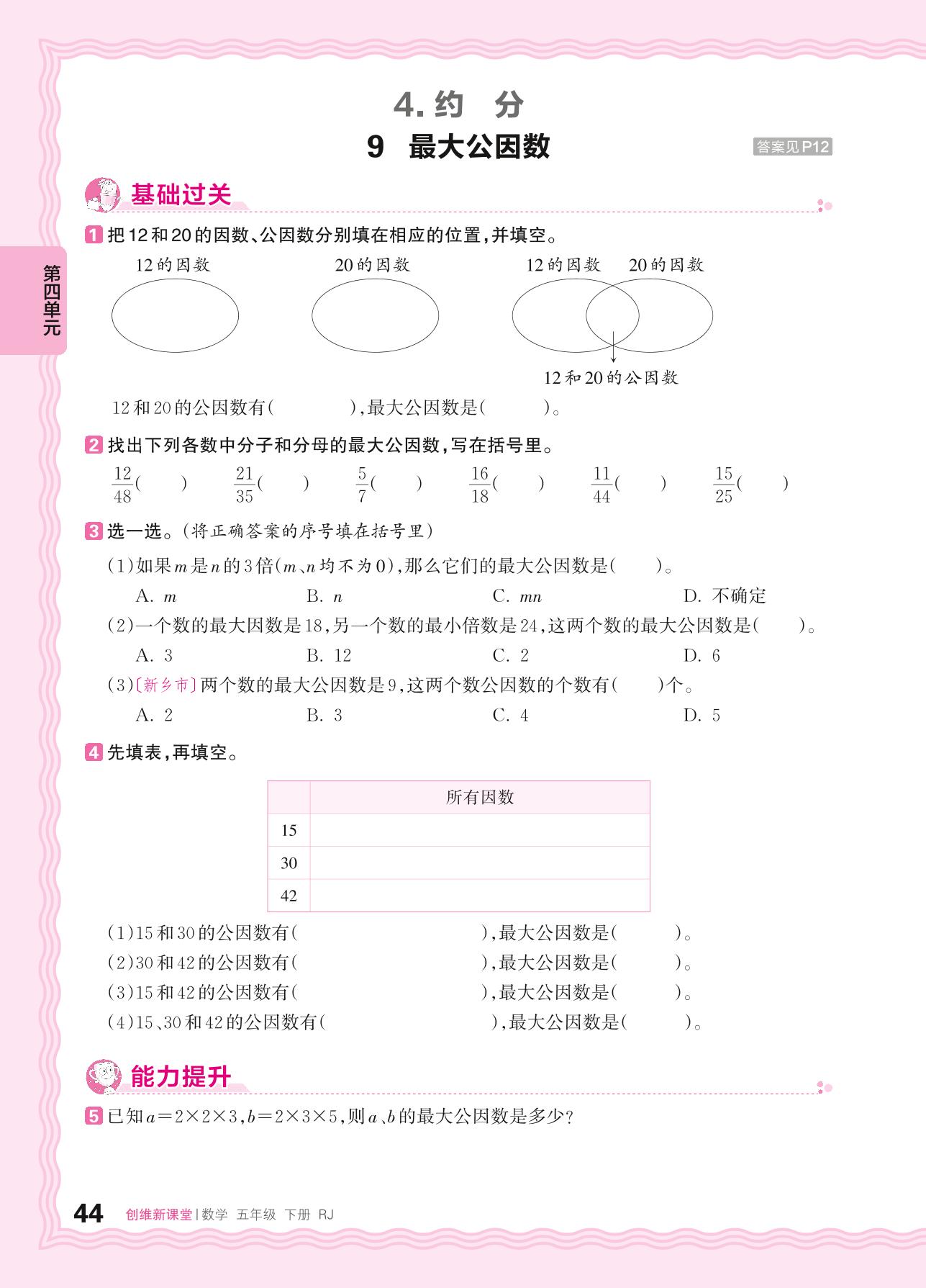 2024春下册五年级数学人教版 第四单元 分数的意义和性质——9. 最大公因数